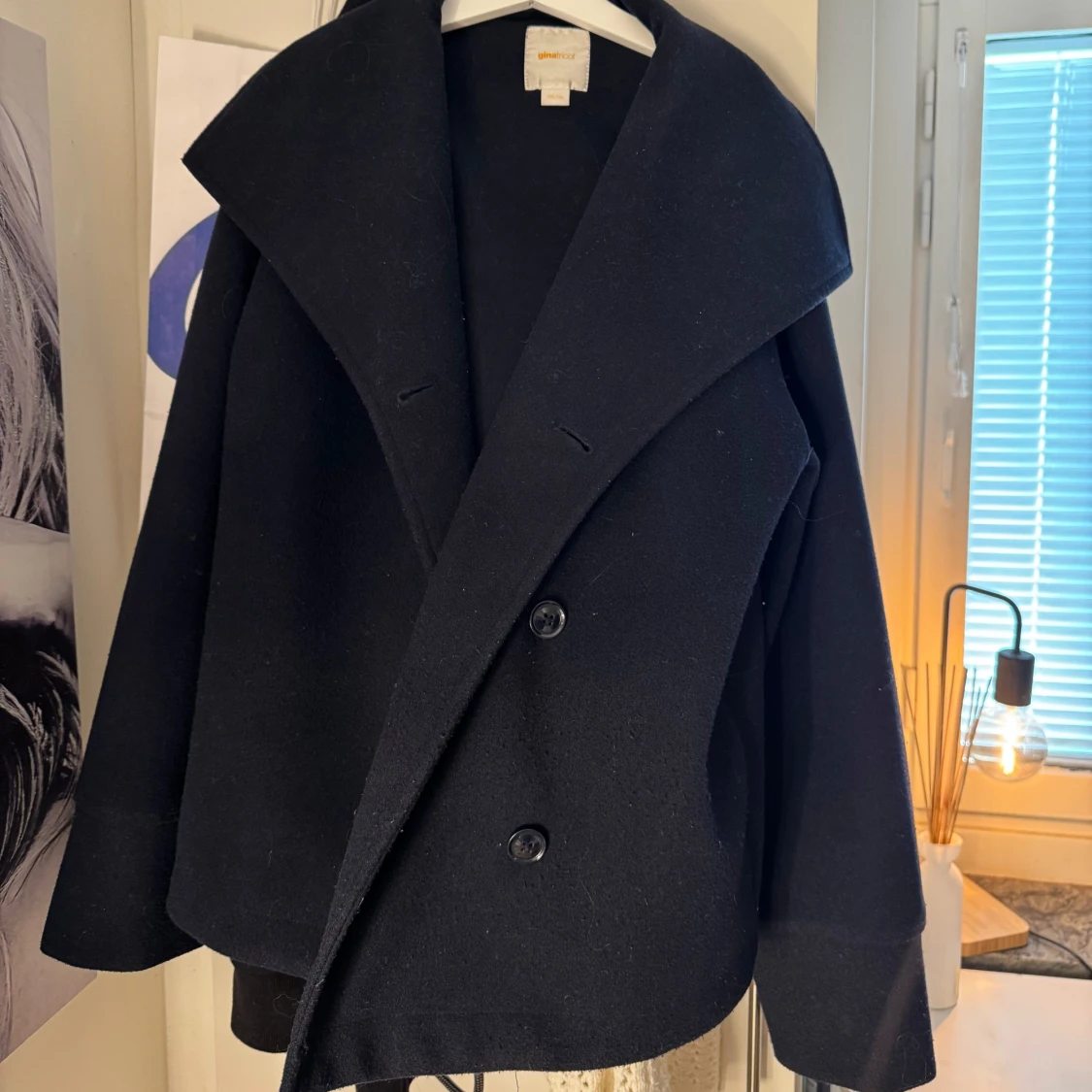 Fin mörkblå kappa från ginatricot Young, storlek 158/164. Passar äldre. Skulle säga storlek S/M beroende på hur man vill att den sitter. Pris kan diskuteras.