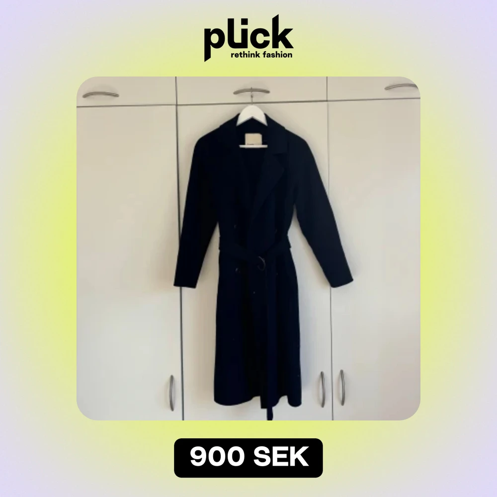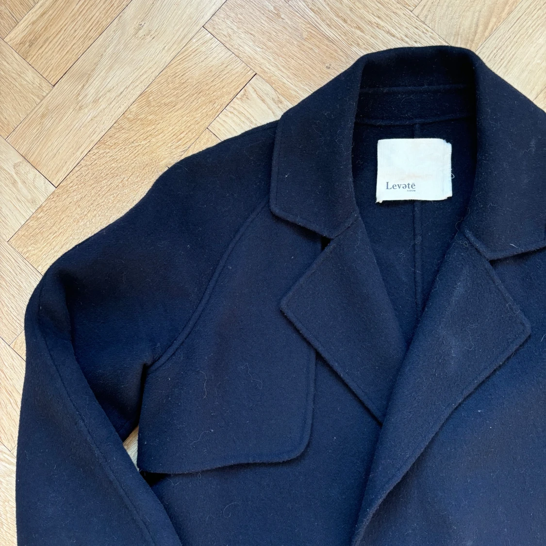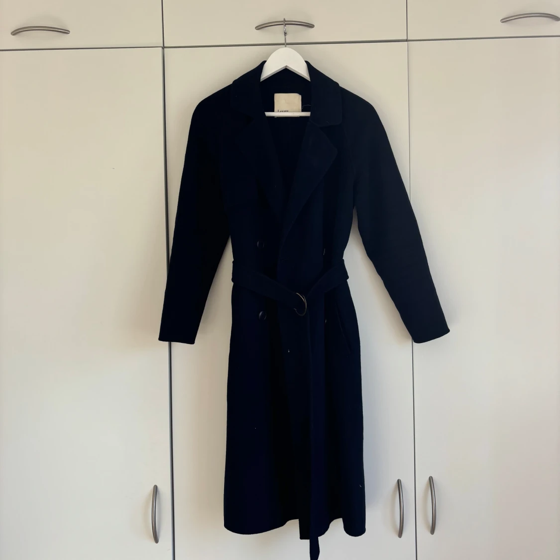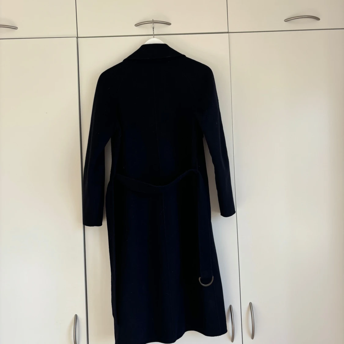 Lite tunnare mörkblå kappa med knappar samt bälte i midjan. Väldigt fint material.