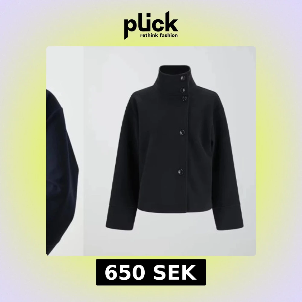 Mörkblå snygg kappa med hög krage och knappar framtill. Jackan har en stilren design med långa ärmar och en rak passform. Perfekt för kyligare dagar. Använd 1 gång och har inga defekter. FÖRESLÅ PRIS😇