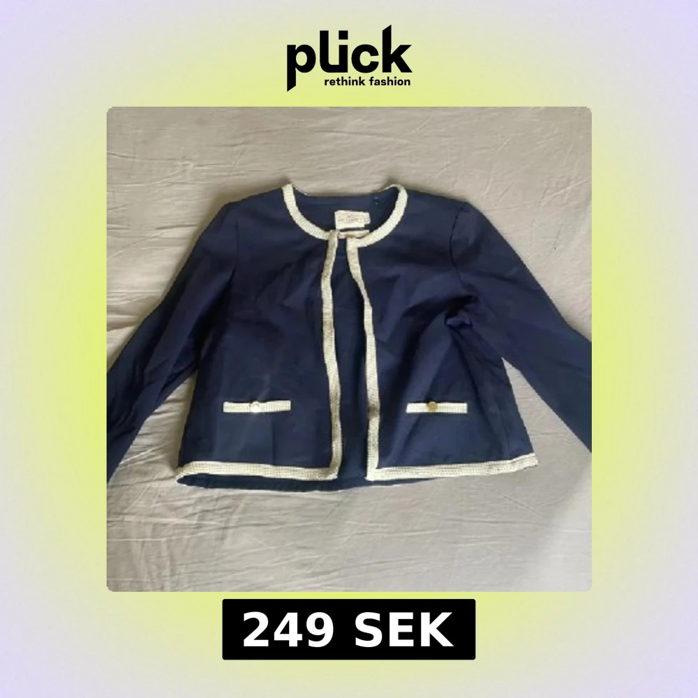 Mörkblå kavaj med vita detaljer