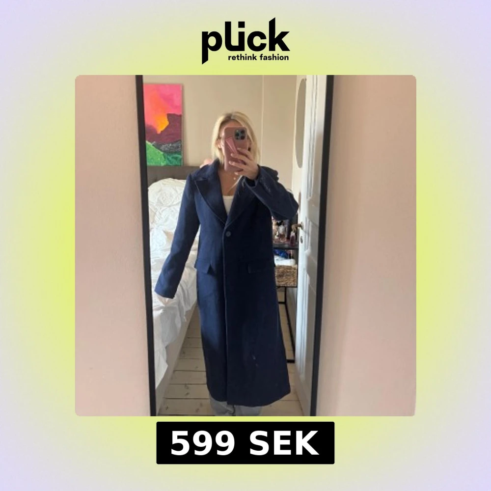 Säljer en stilren mörkblå kappa från NA-KD i klassisk modell med krage och knäppning framtill. Kappan är lång, har två fickor med lock och är helfodrad. Perfekt för dig som gillar en clean och tidlös look.