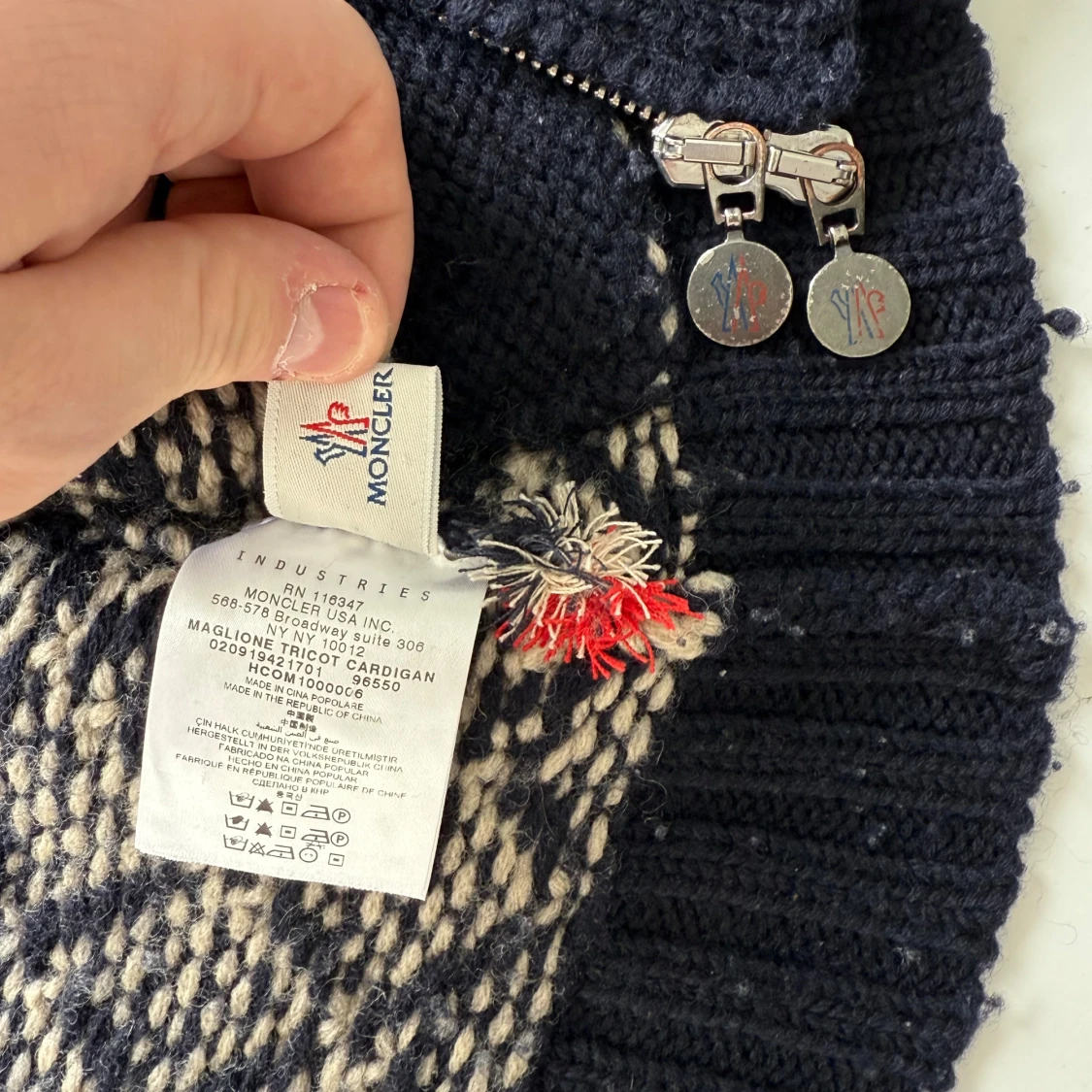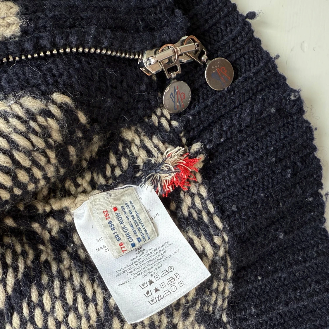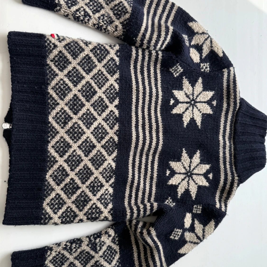 Mörkblå och vit stickad cardigan från Moncler i storlek M. kom med prisförslag! Mvh Fred!