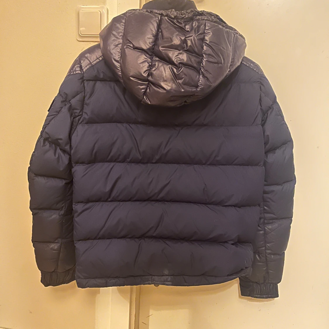 Säljer en mörkblå dunjacka från Moncler med avtagbar huva och snygga detaljer i glansigt material på axlarna. Jackan är köpt för ca 1 år sedan hos vongreven closet. Bortsett från ett litet hål på ena armen samt att dragfliken på dragkedjan gått av är den i bra skick, två väldigt lätt åtgärdade saker. Storlek 0