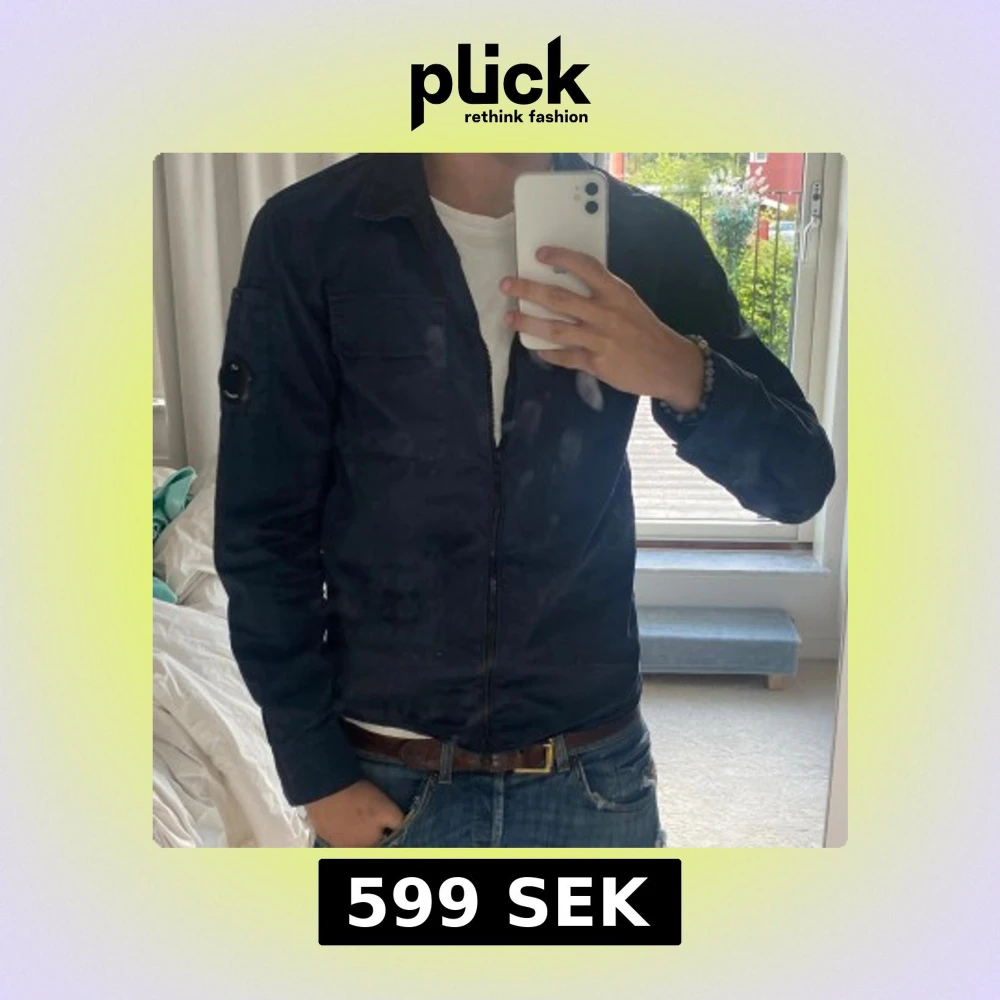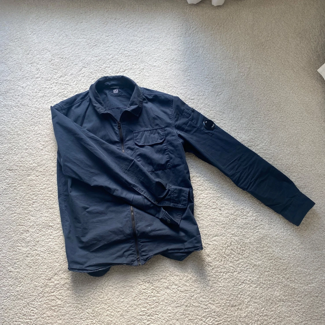 Säljer en mörkblå overshirt från C.P. Company med klassisk krage, dragkedja framtill och en ficka på bröstet. Ärmen har den ikoniska linsen på sidan. Perfekt för lager-på-lager och snygg till jeans.