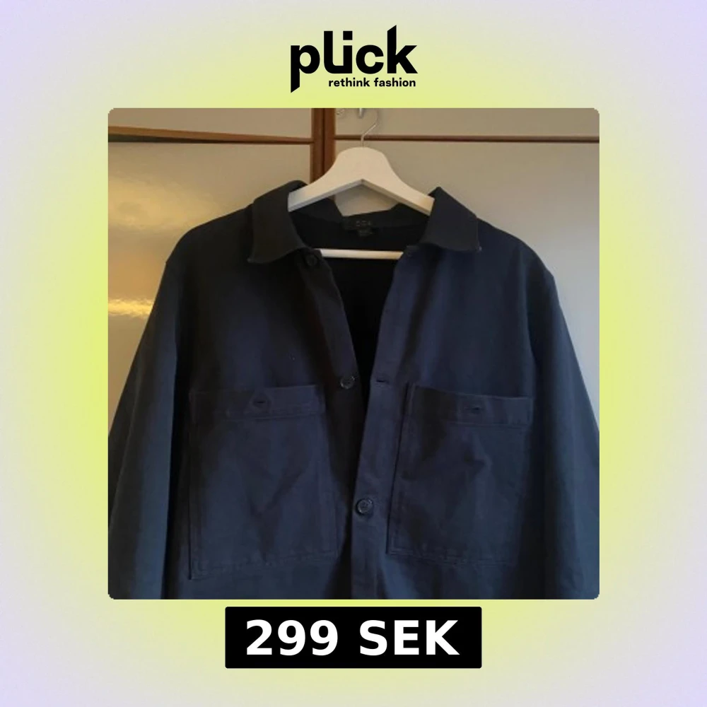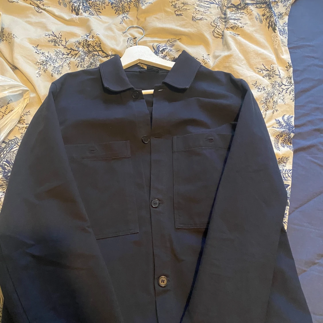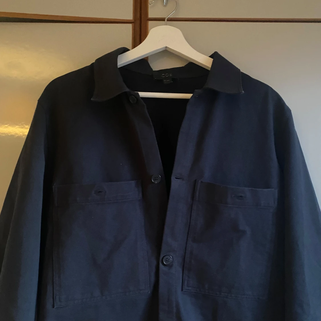 Snygg mörkblå overshirt från COS med knappar framtill och två bröstfickor. Perfekt för både vardag och mer uppklädda tillfällen. Typ helt ny använd typ 2-3 gånger. Köpt för ca 700-800 tror ej dem säljs längre. Kan gå ner i pris