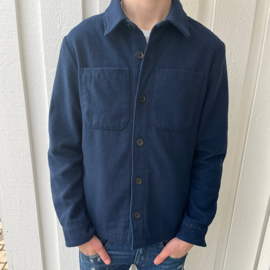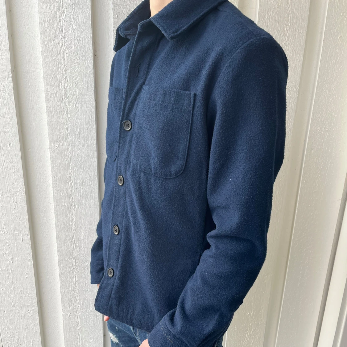 Säljer en stilren mörkblå overshirt med knappar framtill. Jackan har två bröstfickor och långa ärmar, perfekt för en avslappnad look. Passar bra nu till våren. Ifall du har några funderingar är de bara att höra av dig MVH/William