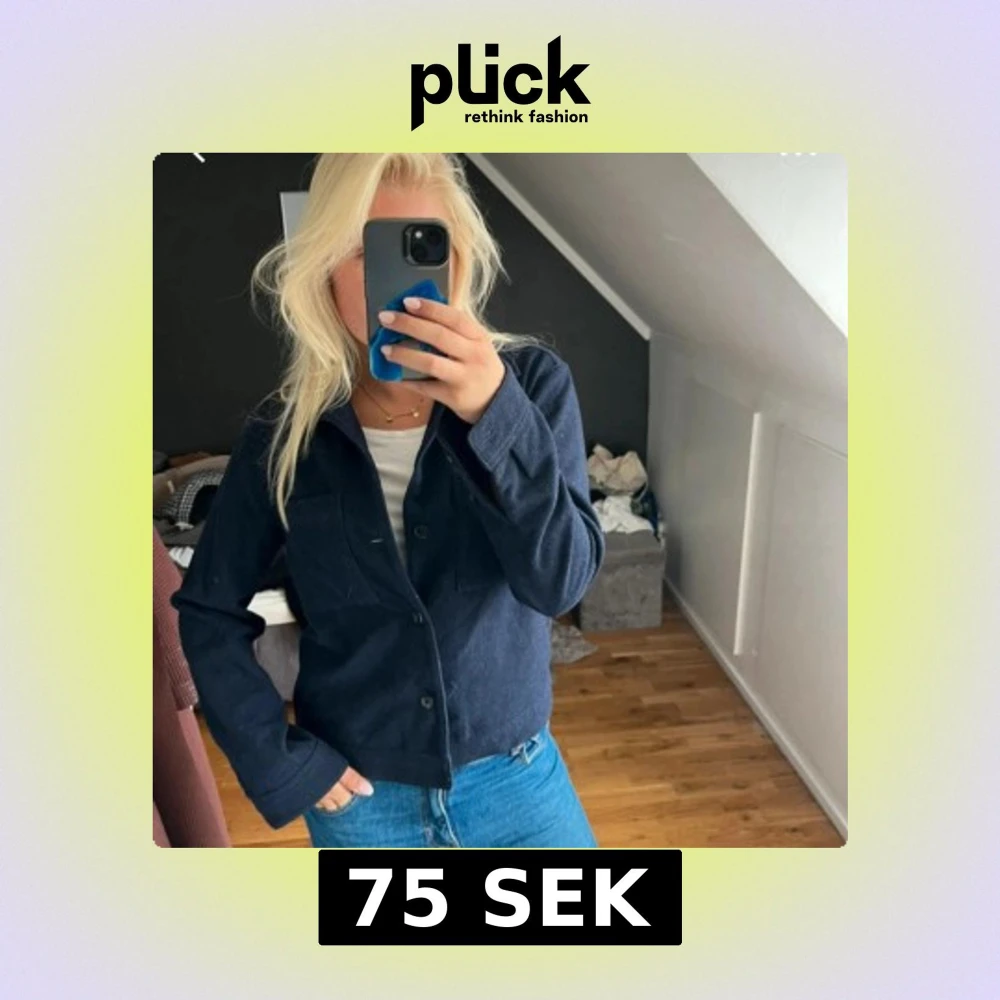 Säljer en stilren mörkblå overshirt från Riley med klassisk krage och två bröstfickor. Jackan har knäppning framtill med svarta knappar och är långärmad. Materialet är mjukt och känns som ull, perfekt för lager-på-lager under höst och vår.