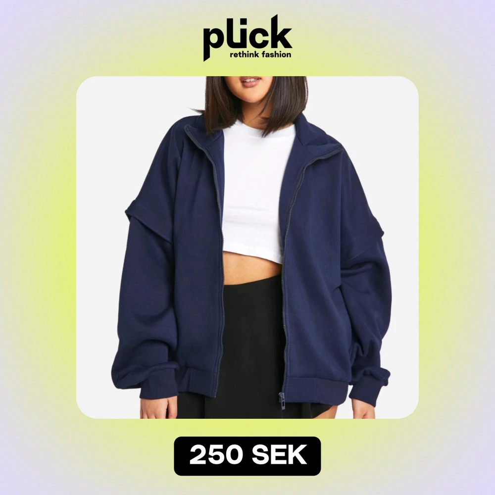 Säljer en mörkblå oversized jacka i mycket bra skick. Den har en dragkedja framtill och långa ärmar. Perfekt för höst och vår när du vill ha en avslappnad stil. Jackan är gjord av ett mjukt material som känns skönt mot huden.