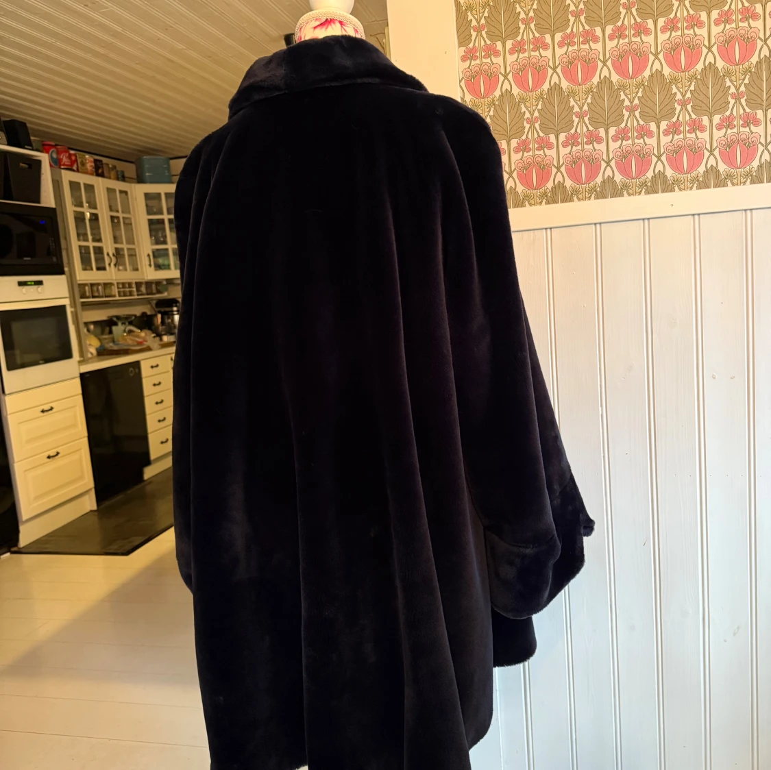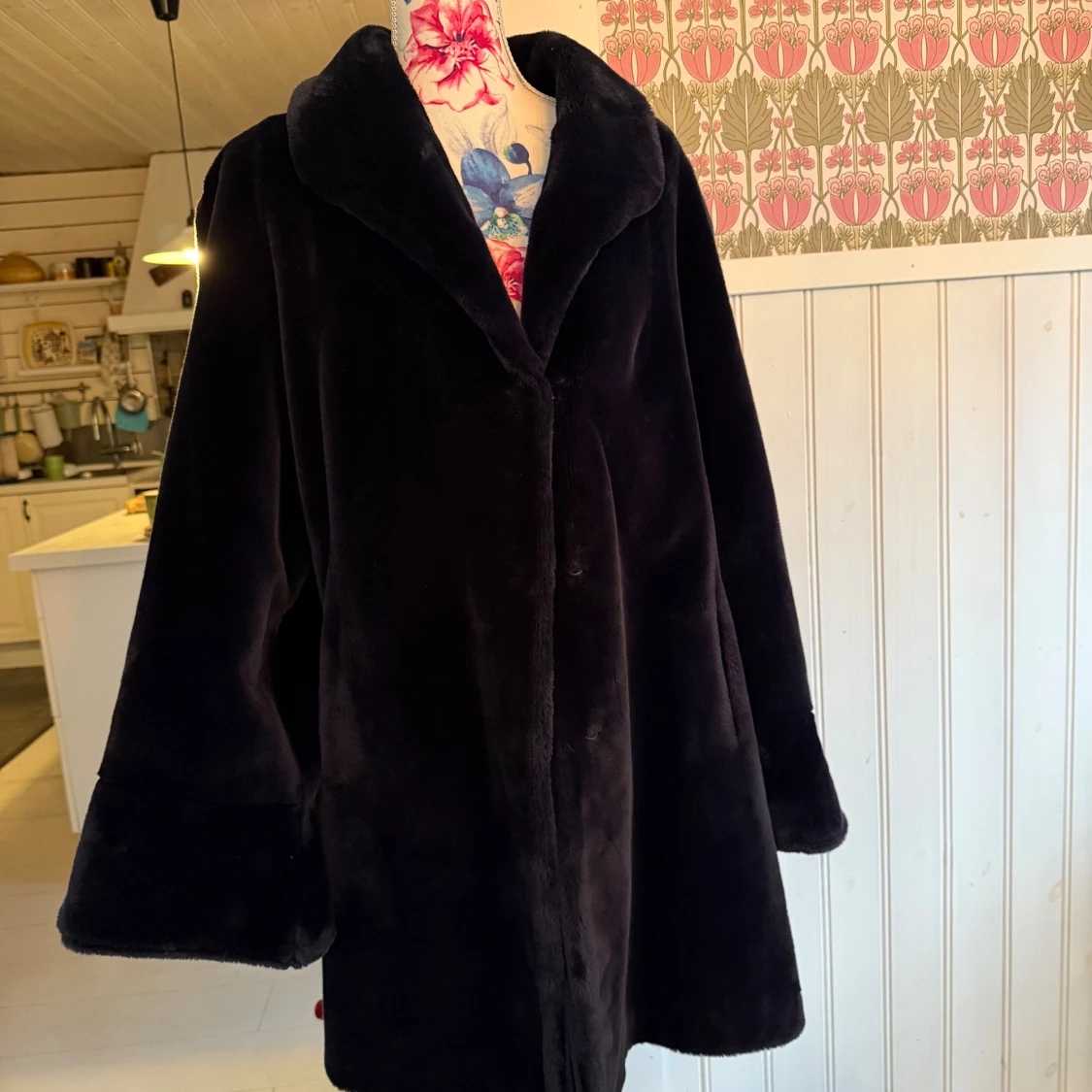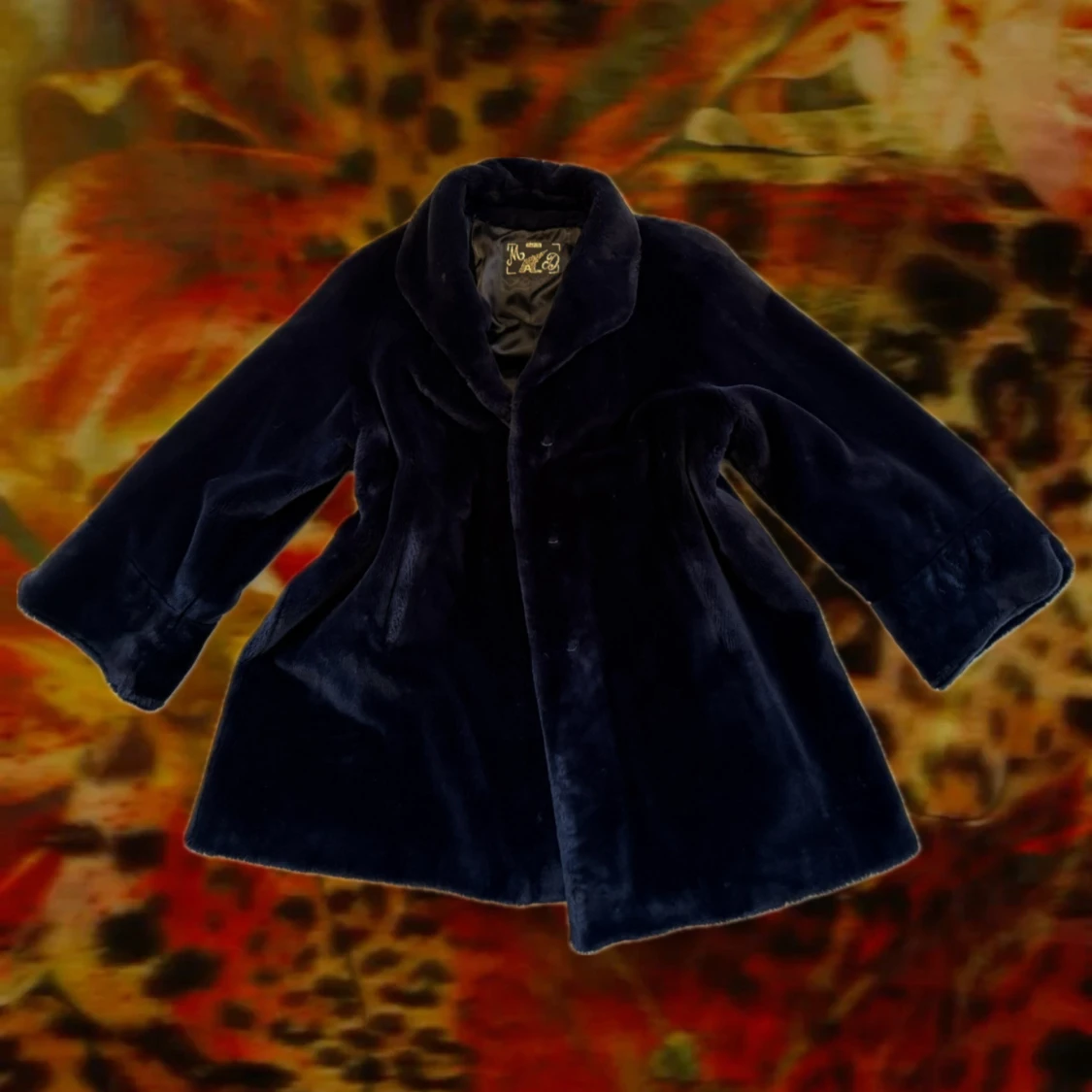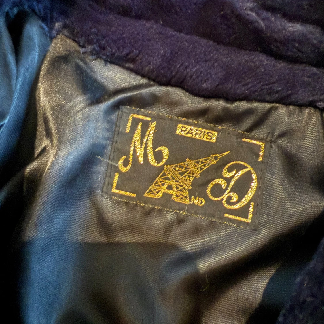 Säljer en snygg mörkblå pälsjacka från M&D Paris med bred krage och generös passform. Jackan har en mjuk och lyxig känsla, är helfärgad och har långa ärmar. Perfekt för dig som vill ha en cool och elegant look under kalla dagar.1960 tal!