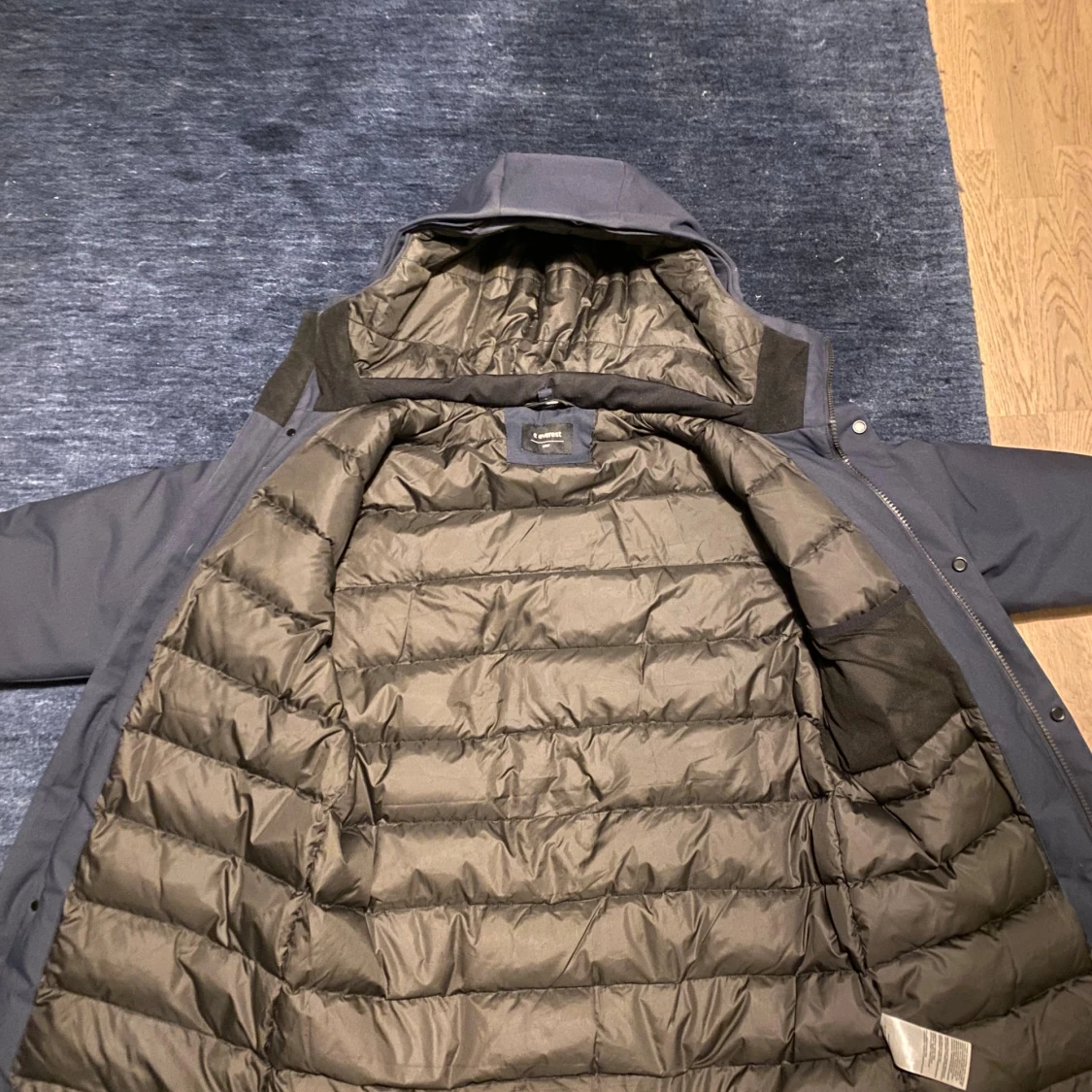 Säljer en mörkblå parkajacka från Everest med huva och dragkedja. Jackan har två stora fickor framtill, quiltat foder och en clean look. Perfekt för kalla dagar och riktigt skön att bära. Passar dig som gillar stilren och funktionell design.
