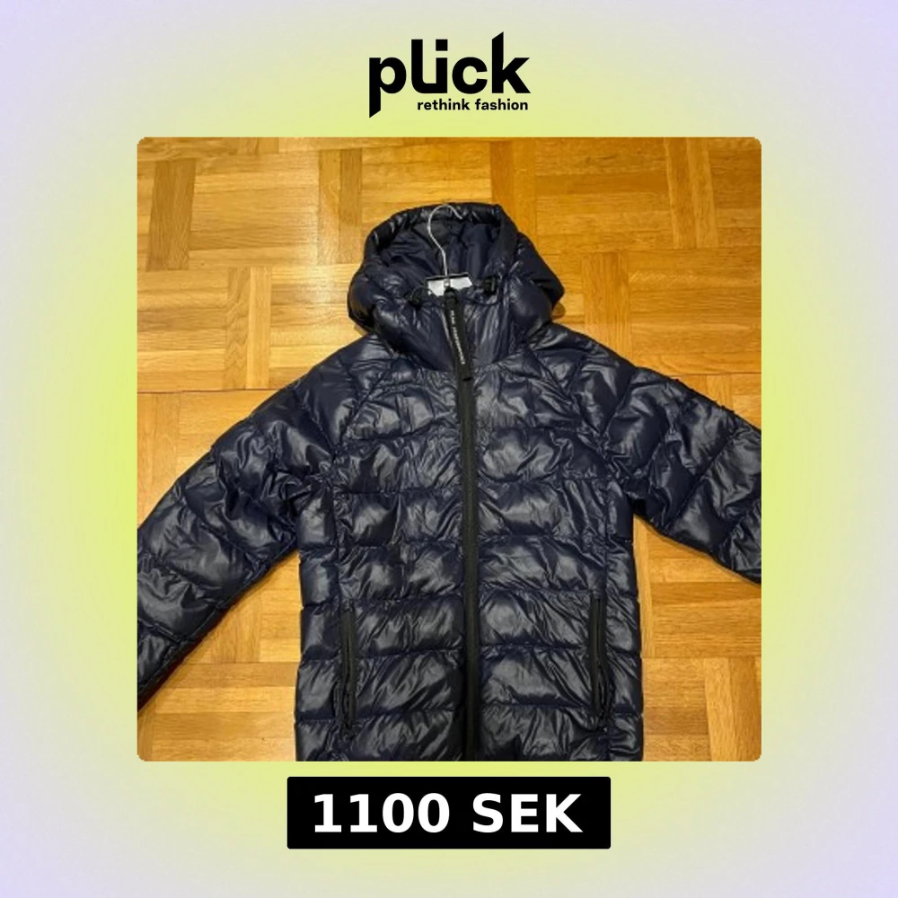 Snygg mörkblå dunjacka från Peak Performance med huva och svarta detaljer. Jackan har quiltad design, två dragkedjeförsedda fickor och logotyp på ärmen. Perfekt för kalla dagar och har en modern, sportig look som funkar till streetwear. Och priset går att diskutera såklart
