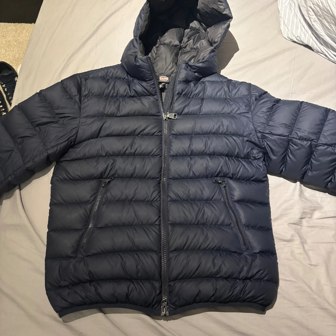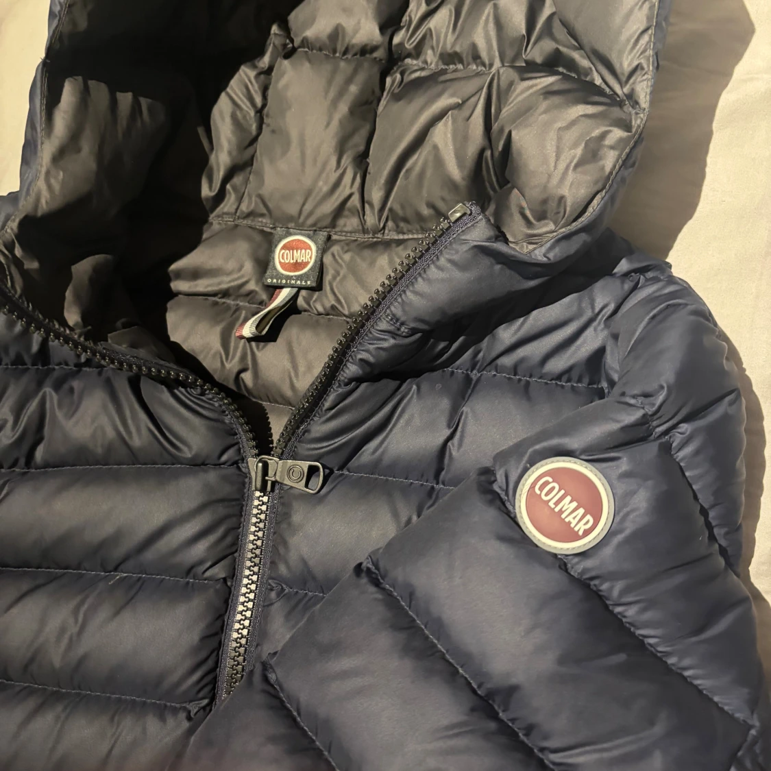 Säljer en mörkblå pufferjacka från Colmar med huva och två dragkedjeförsedda fickor. Jackan har quiltad design och tydlig logga på bröstet. Perfekt för kyliga dagar och riktigt snygg till streetwear-stilen. Jackan är köpt för 4699 på julafton. Har en lite skråma på sidan som inte syns alls