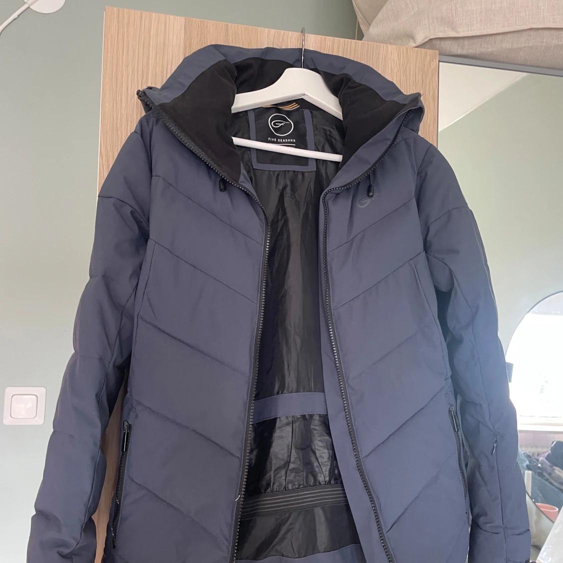 Snygg mörkblå pufferjacka från Five Seasons med huva och dragkedja framtill. Jackan har två dragkedjefickor, quiltad design och justerbar dragsko i huvan. Perfekt för kalla dagar och har en stilren look som funkar till det mesta.