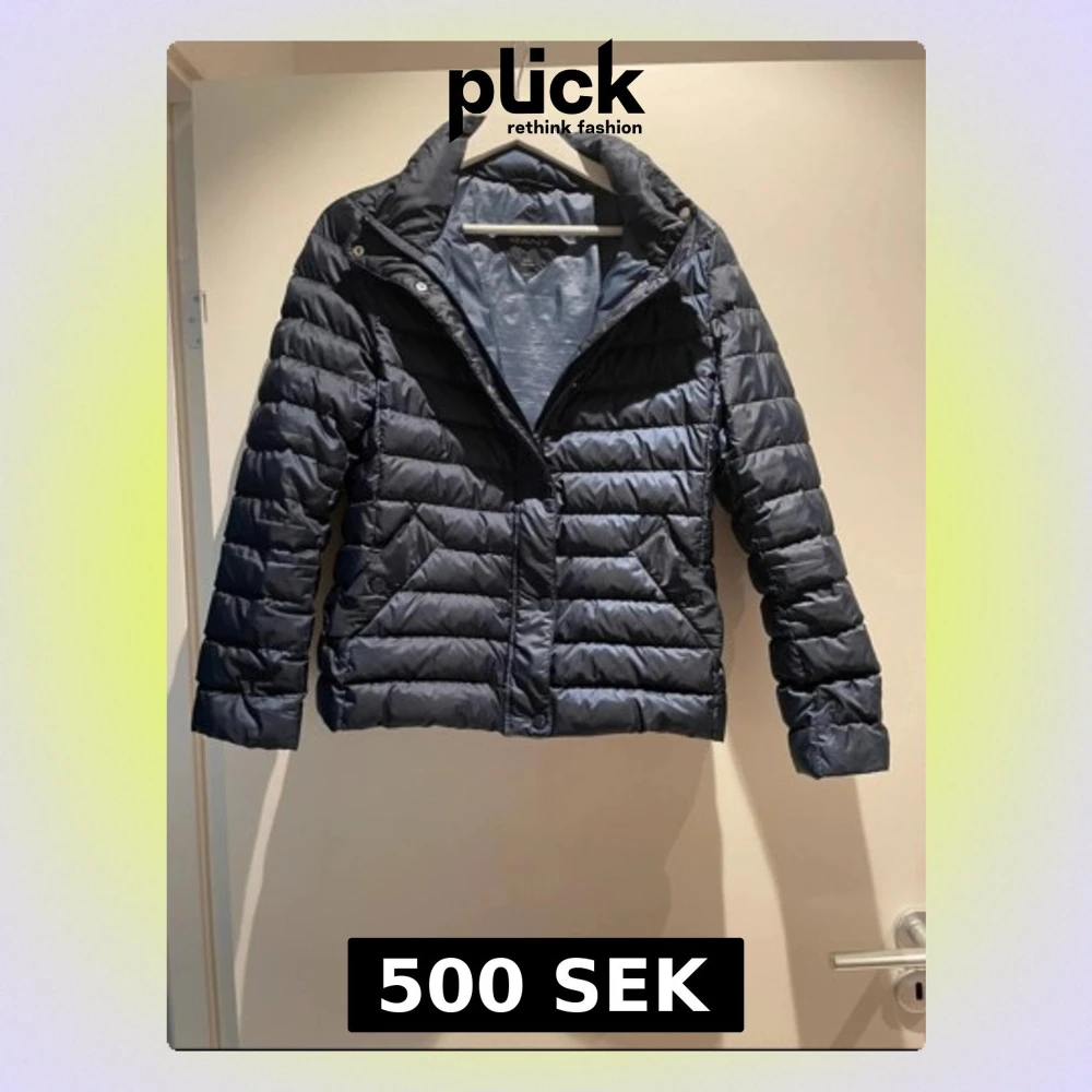 Snygg mörkblå pufferjacka från GANT i storlek small. Jackan har horisontella quiltade sektioner, hög krage och dragkedja framtill. Tillverkad i polyester, perfekt för kyliga dagar. Enkel och stilren design som funkar till många olika looks.