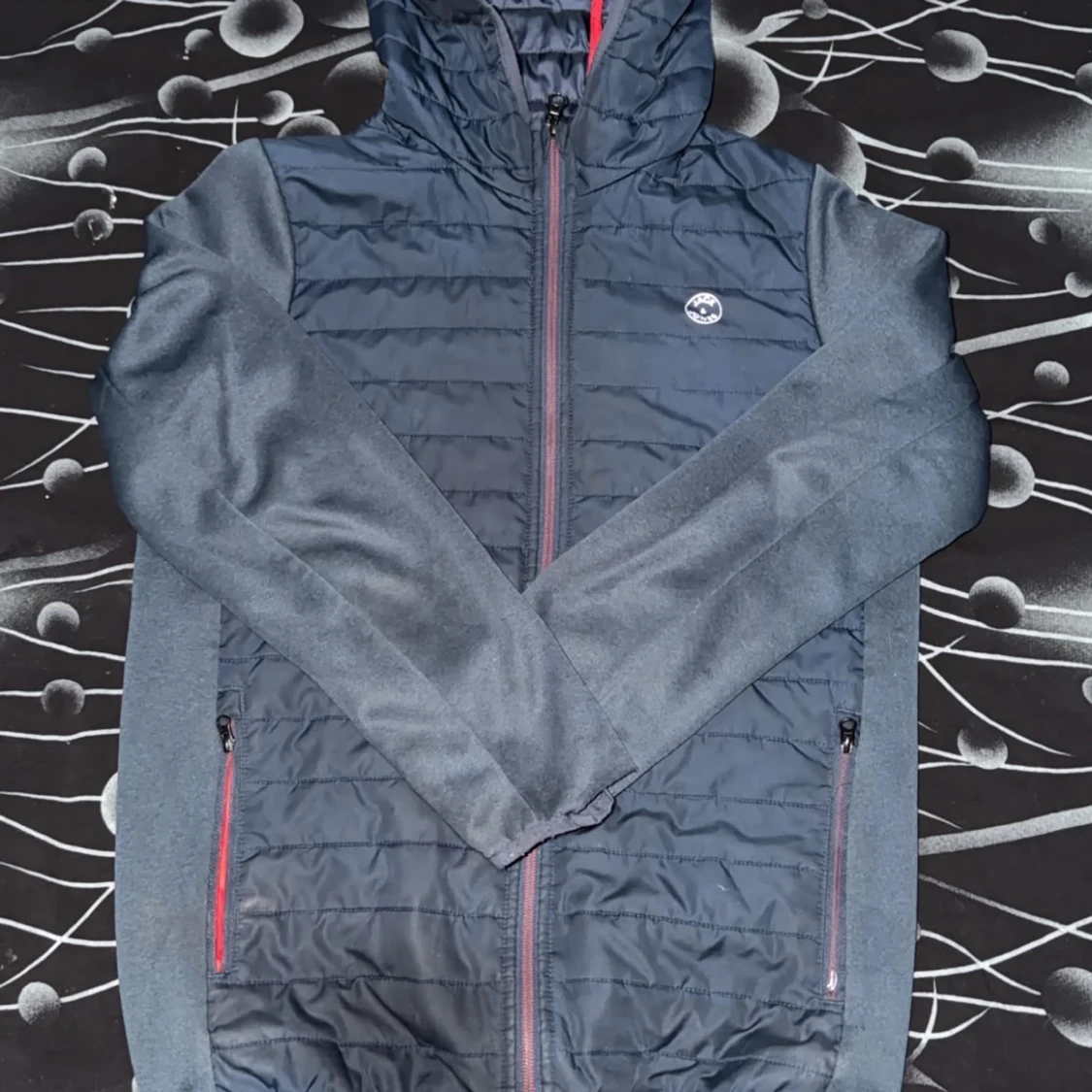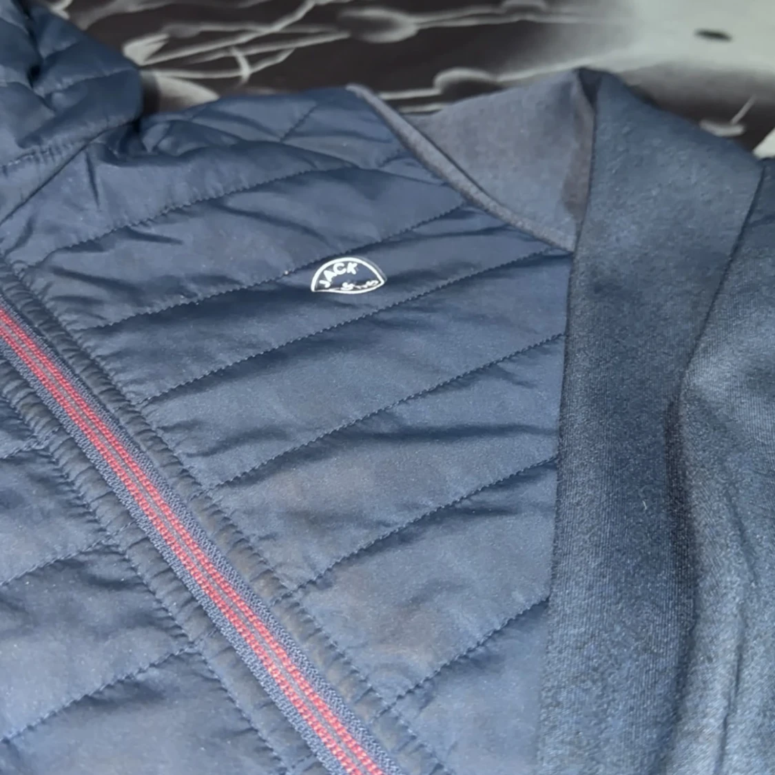 Snygg mörkblå pufferjacka med huva från Jack. Jackan har quiltad framsida och rygg, röda detaljer på dragkedjorna och två sidofickor med dragkedja. Ärmarna är släta och materialet känns mjukt och sportigt. Perfekt för kyliga dagar. Storlek har en i 164 och en i 158