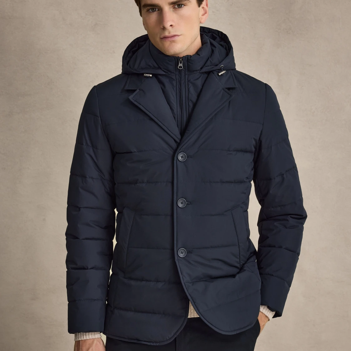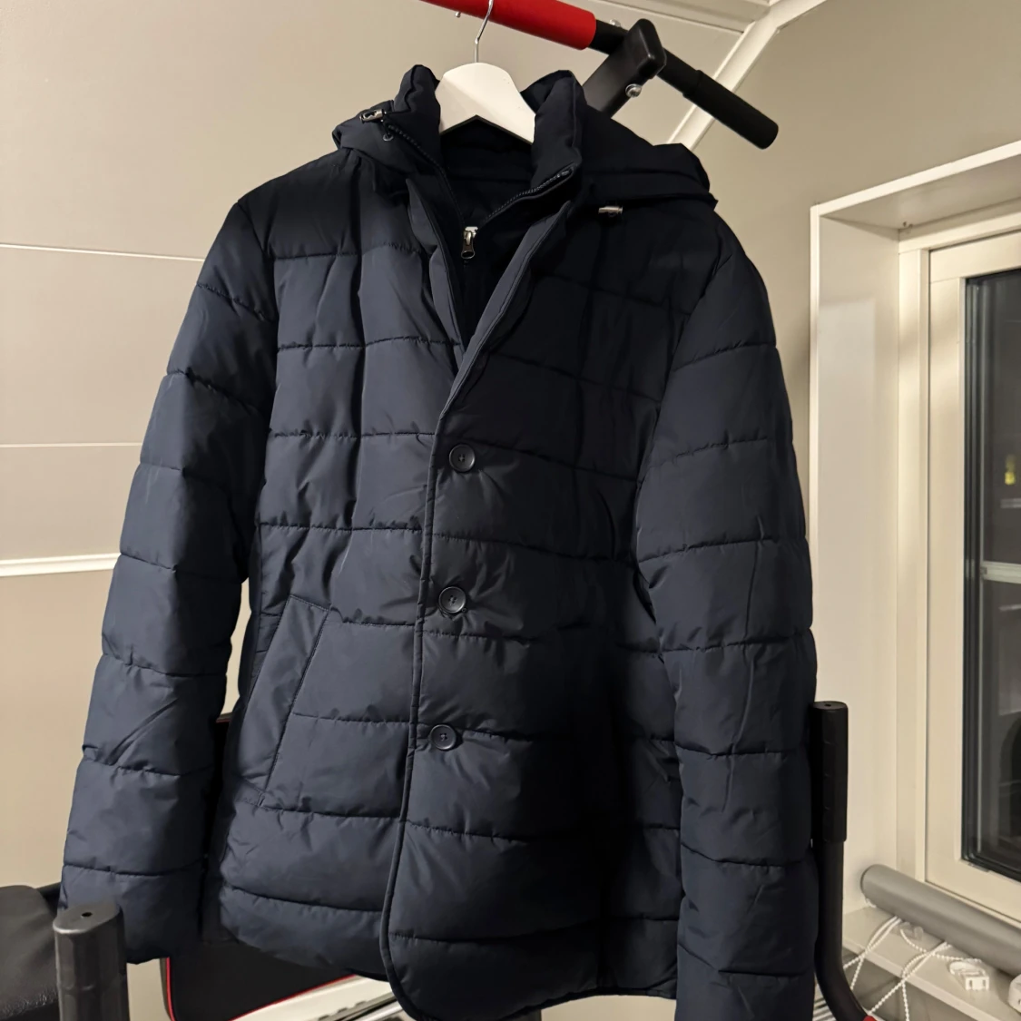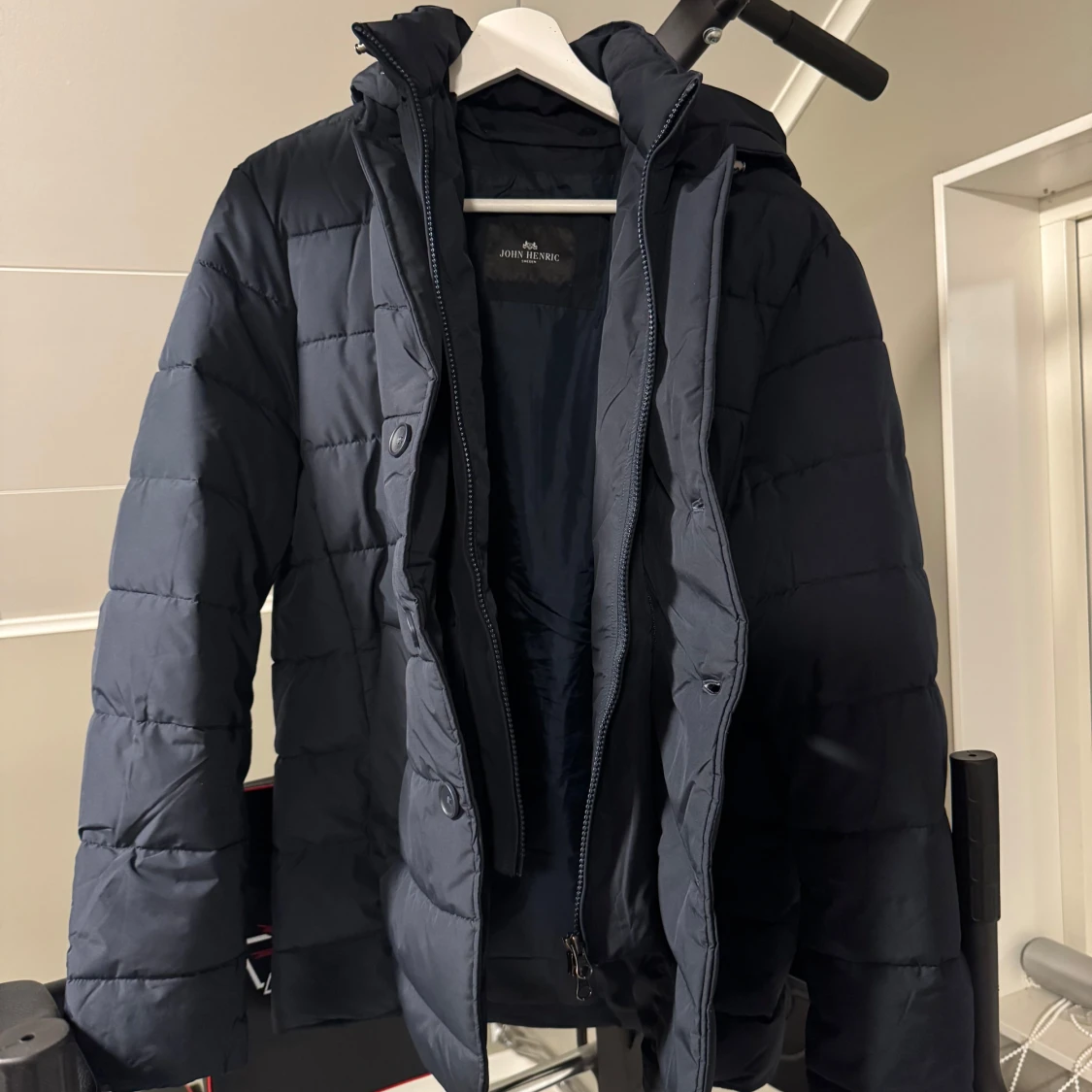 Snygg mörkblå pufferjacka från John Henric använt fåtal gånger då den är inköpt precis och då är som ny. Den har avtagbar huva, knappar och dragkedja framtill. Jackan har quiltad design, klassisk krage och två fickor samt en innerficka. Perfekt för kalla dagar och stilren look. Allt original följs med som påse o taggar.