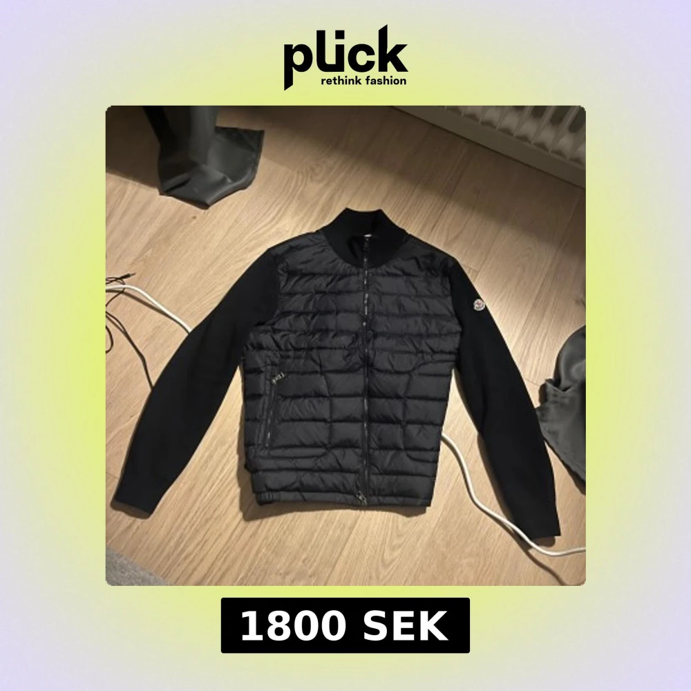 Snygg svart pufferjacka från Moncler med quiltad front och släta ärmar. Jackan har dragkedja framtill, två fickor med dragkedja och Moncler-logga på ärmen. Perfekt för dig som vill ha en stilren och sportig look.
