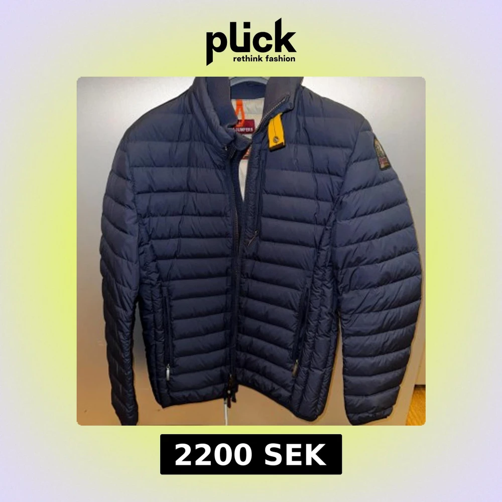 Snygg mörkblå pufferjacka (super lightweight) från Parajumpers med dragkedja och hög krage, k perfekt skick. Storlek Small. Jackan har en quiltad design och är perfekt för kyligare väder. Den har en diskret logga på ärmen och praktiska fickor med dragkedja. Nypris på Care of Carl ligger på 5199kr. Säljs för 2200kr