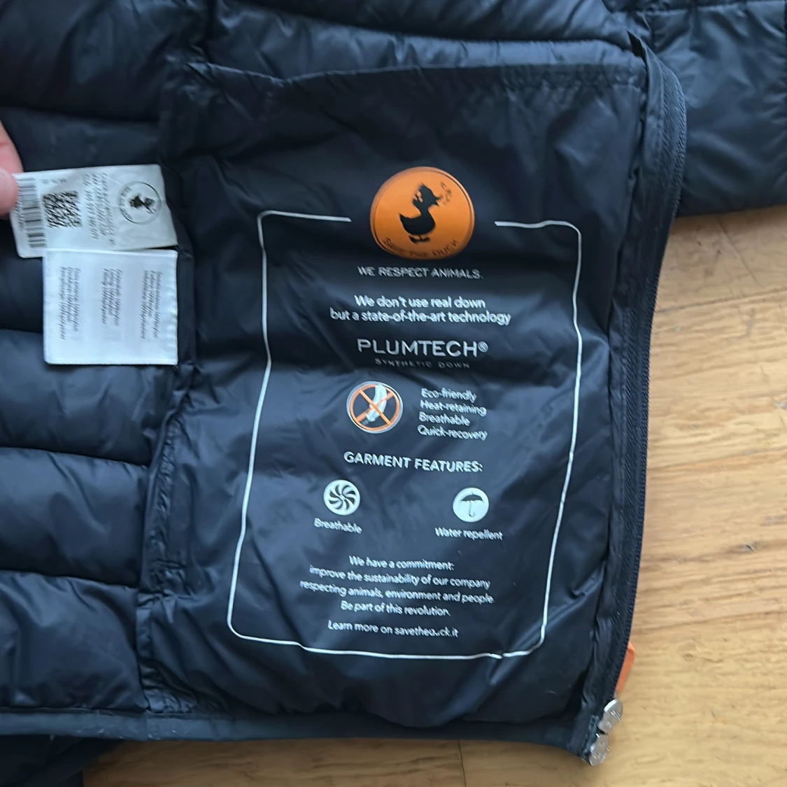 Säljer en svart pufferjacka från Save the Duck i storlek M. Jackan är ultralätt och har en huva samt dragkedja framtill. Den är tillverkad med Plumtech-teknologi och är 100% djurfri. Perfekt för kyliga dagar! Nypris ligger runt 1400kr