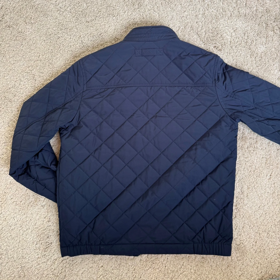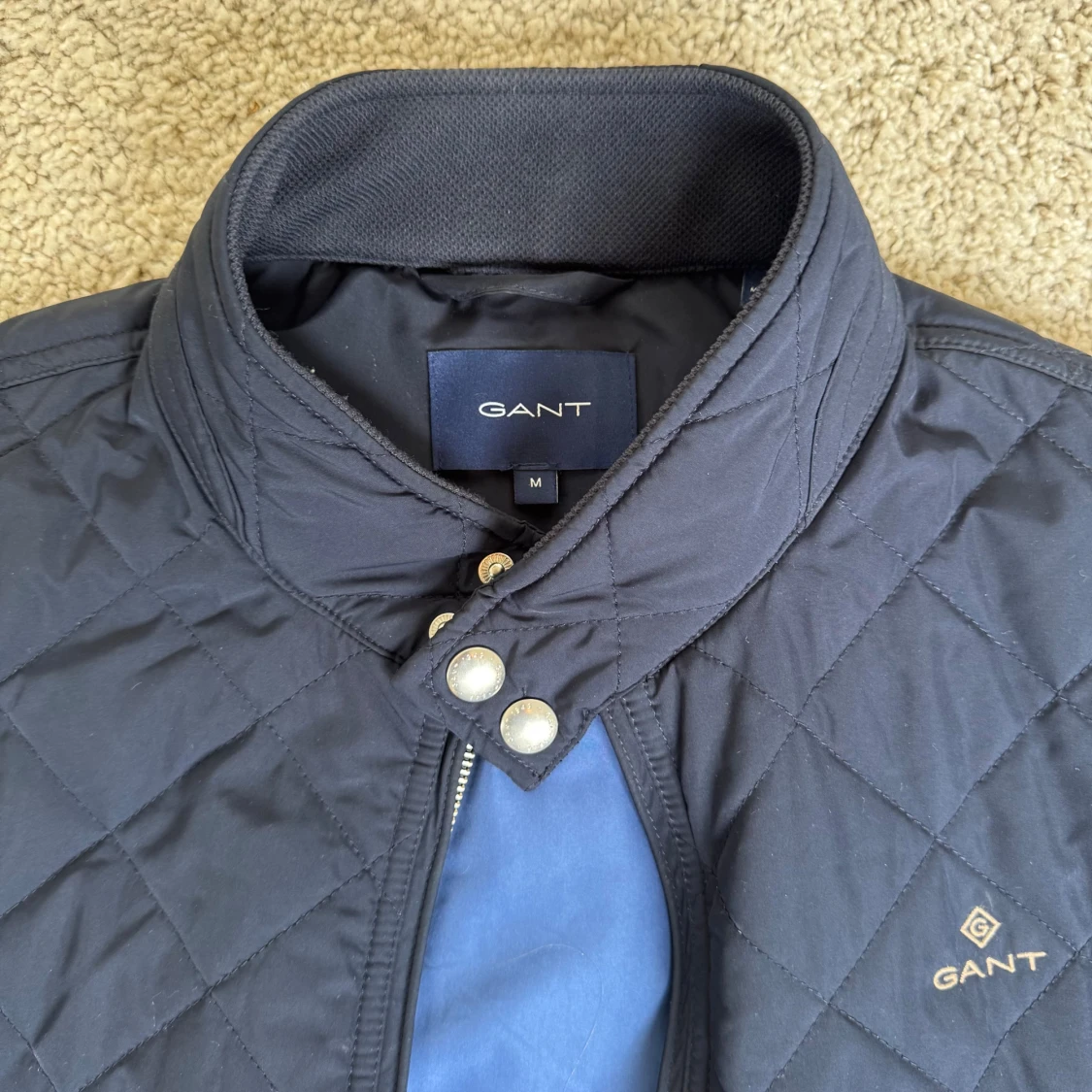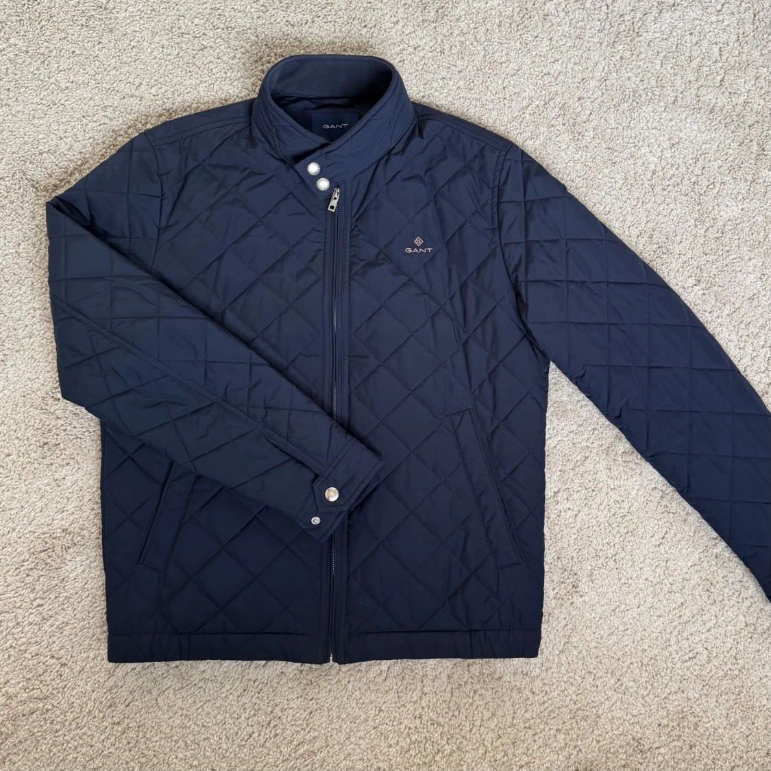 Säljer en stilren mörkblå quiltad jacka från GANT i storlek M. Jackan har ståkrage med tryckknappar, dragkedja framtill och två fickor. Jackan är använd en säsong men är i så gott som nyskick (se krage på bild 4). Nypris: 2500 kr