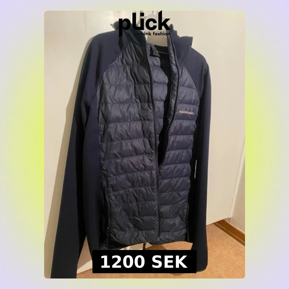 Snygg mörkblå jacka från Peak Performance i storlek S. Jackan har quiltad framsida och rygg, huva och dragkedja. Materialet är polyester och syntet, perfekt för kyliga dagar. Stilren design med diskret logga på bröstet.