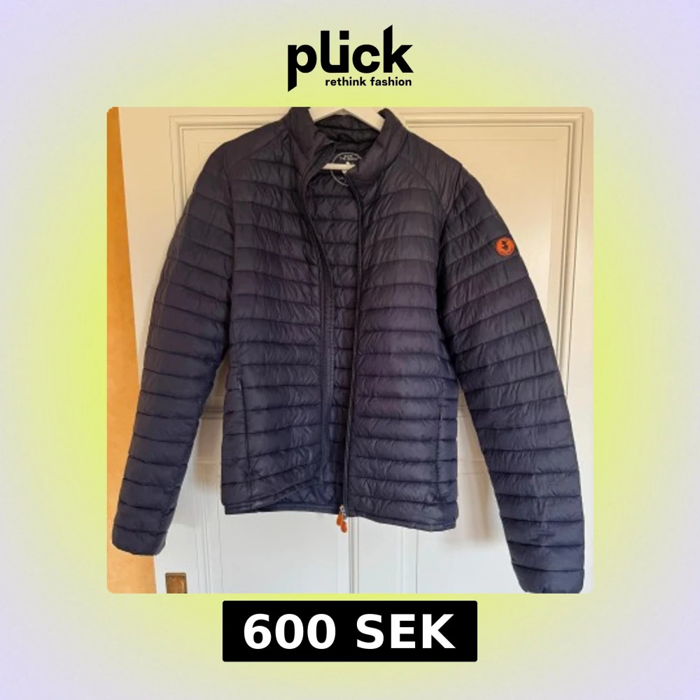 Snygg mörkblå jacka från Save the duck me diskret logga på ärmen. Säljer den då den tyvärr har blevit för liten för mig samt bara hänger i garderoben. Små i storleken så skulle säga L passar m bättre. Perfekt för kyliga dagar när du vill hålla stilen enkel och clean.