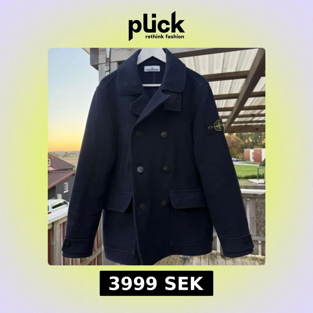 Stilren mörkblå skepparkavaj från Stone Island med klassisk dubbelknäppning, bred krage och två stora fickor framtill. Jackan har ikonisk logotyp på ärmen och är tillverkad i ull för en varm och exklusiv känsla. Nypris 18 000kr