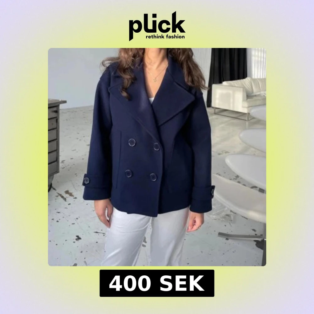 Säljer en stilren mörkblå skepparkavaj med dubbelknäppning och stora slag. Jackan har breda ärmslut med knappdetalj och en rak, loose passform. Perfekt för dig som vill ha en klassisk look med modern touch.