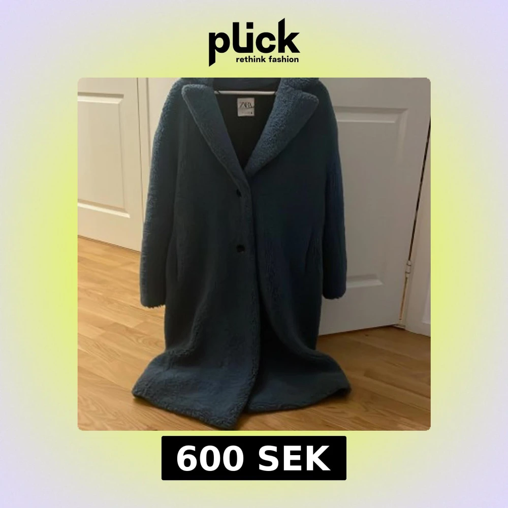 Säljer en lång, mörkblå teddyjacka från Zara i storlek L. Jackan har oversized passform, stora slag och stängs med knappar framtill. Den är gjord i mjukt teddy-material och har en clean look utan synliga detaljer. Perfekt för kalla dagar. Priset är inte hugget i sten
