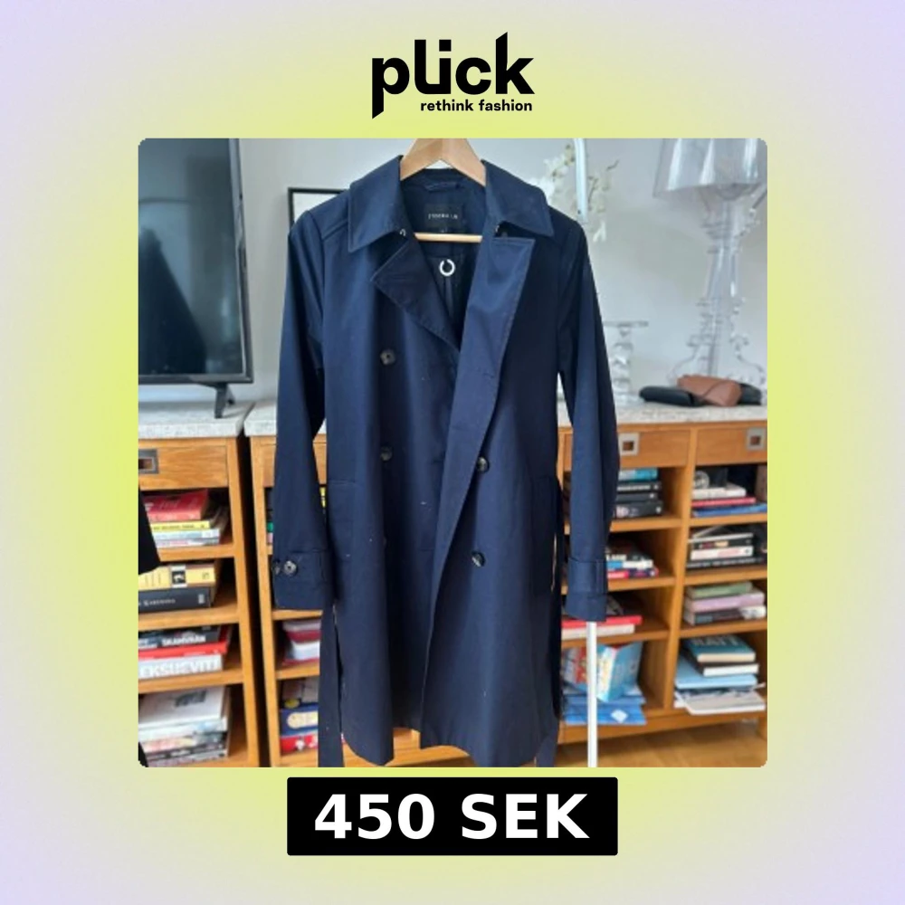 Snygg mörkblå trenchcoat från Stockh LM i storlek XS. Jackan har knappar framtill och ett bälte i midjan för en stilren look. Tillverkad i bomull med polyesterfoder, perfekt för vår och höst. En klassisk och tidlös design som passar till många tillfällen.