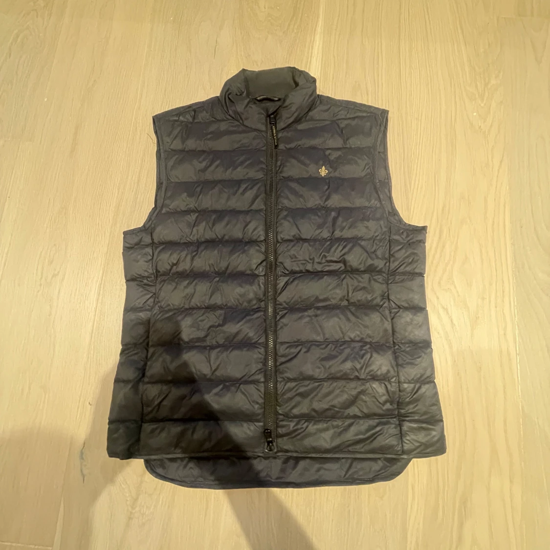 Säljer en mörkblå väst från Morris i storlek Small. Perfekt för lager-på-lager och snygg att styla till både hoodie och skjorta. Klassisk Morris-logga på bröstet och stilren look. Västen har däremot en liten skada på ryggen men syns inte så mycket och går att laga. Levererar inom 1-2 dagar.