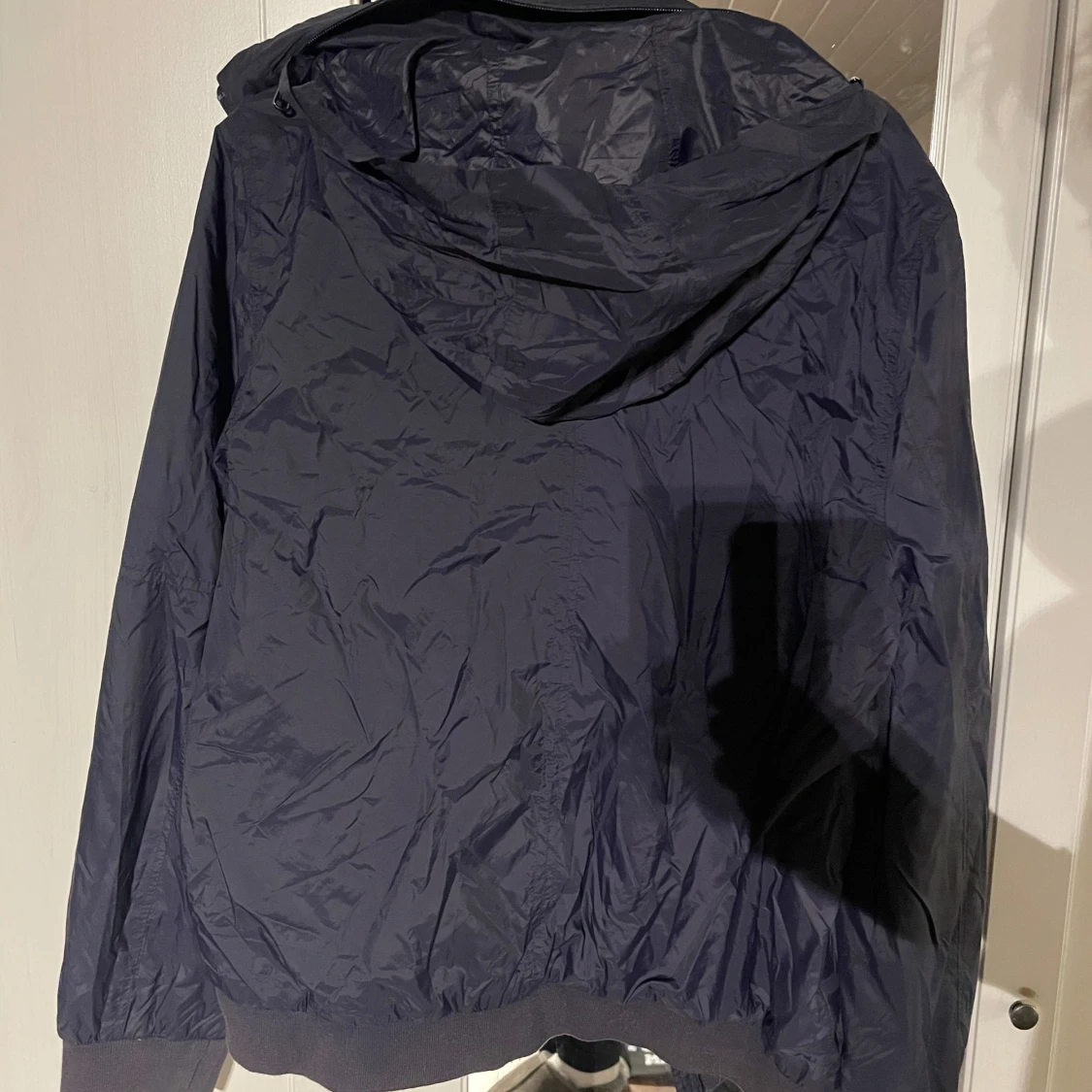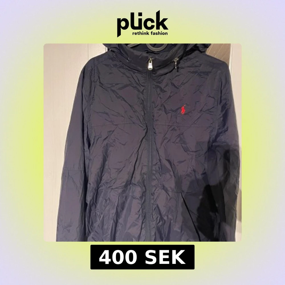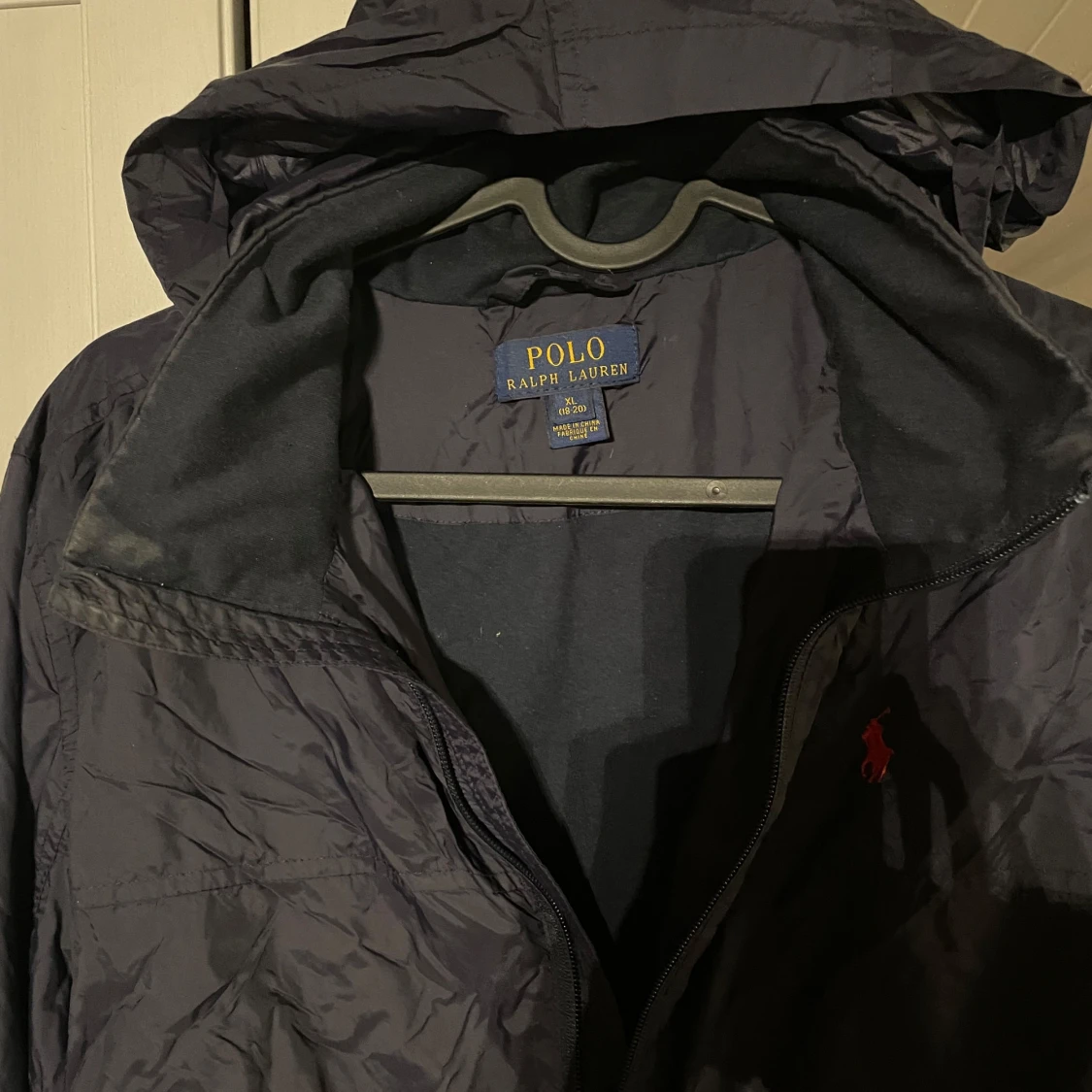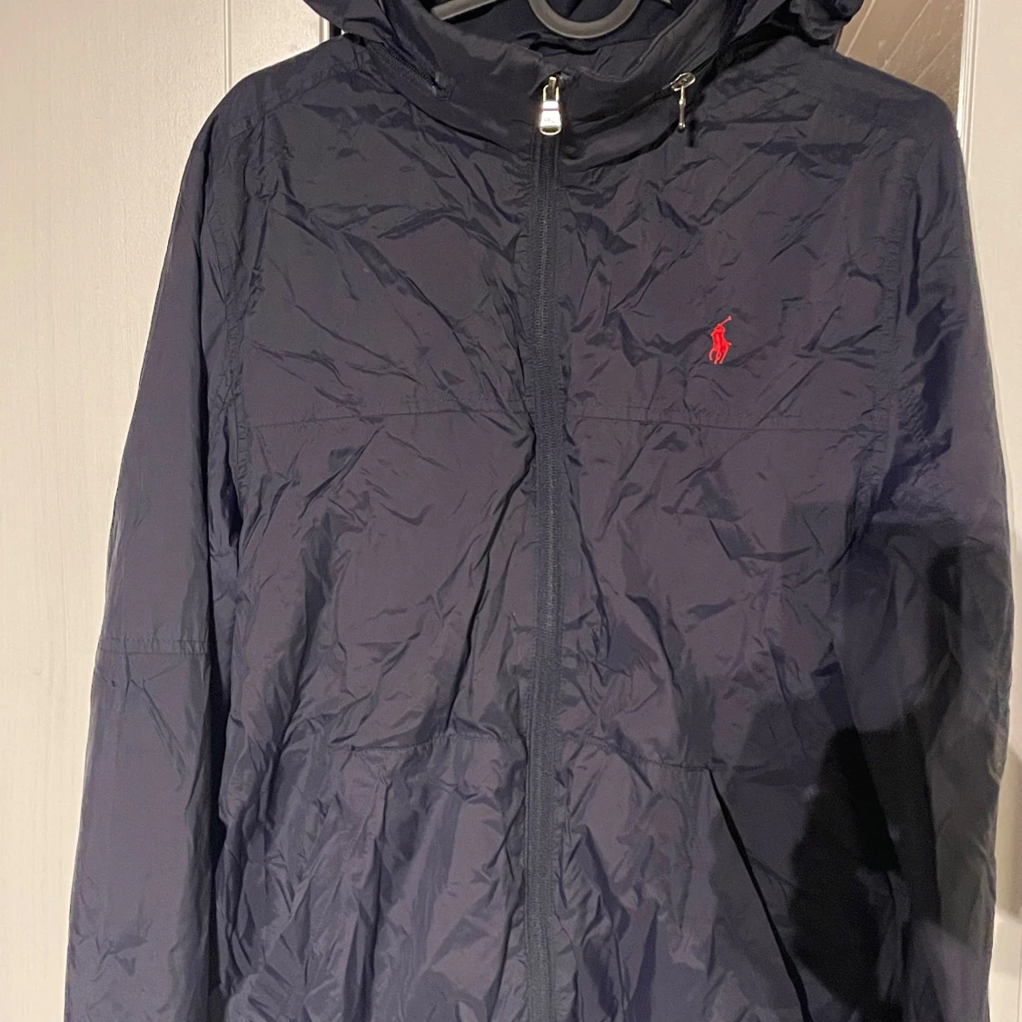 Snygg mörkblå vindjacka från Ralph Lauren med dragkedja och huva. Jackan har en liten röd logotyp på bröstet och är perfekt för blåsiga dagar. Den är lätt och smidig att bära med sig.
