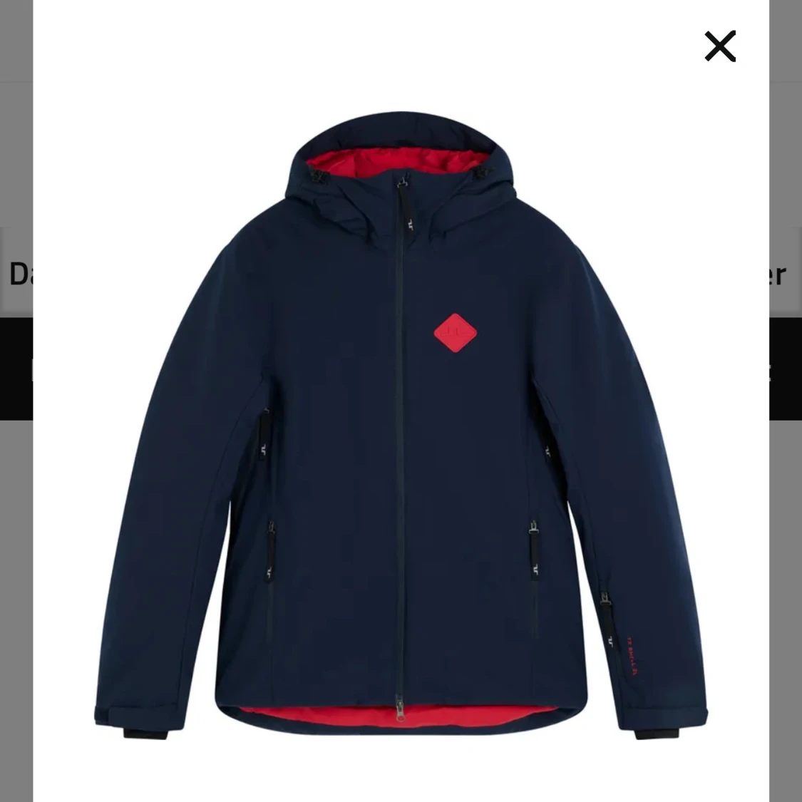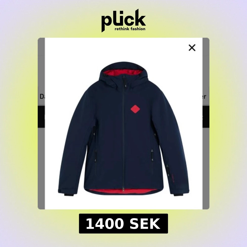 Snygg mörkblå skidjacka med röd insida och röd logga på bröstet. Jackan har huva, hel dragkedja framtill och sidoficka med dragkedja. Perfekt för blåsiga dagar och skidåkning, enkel att matcha med det mesta. Modellen starling. Nypris ca 4000kr