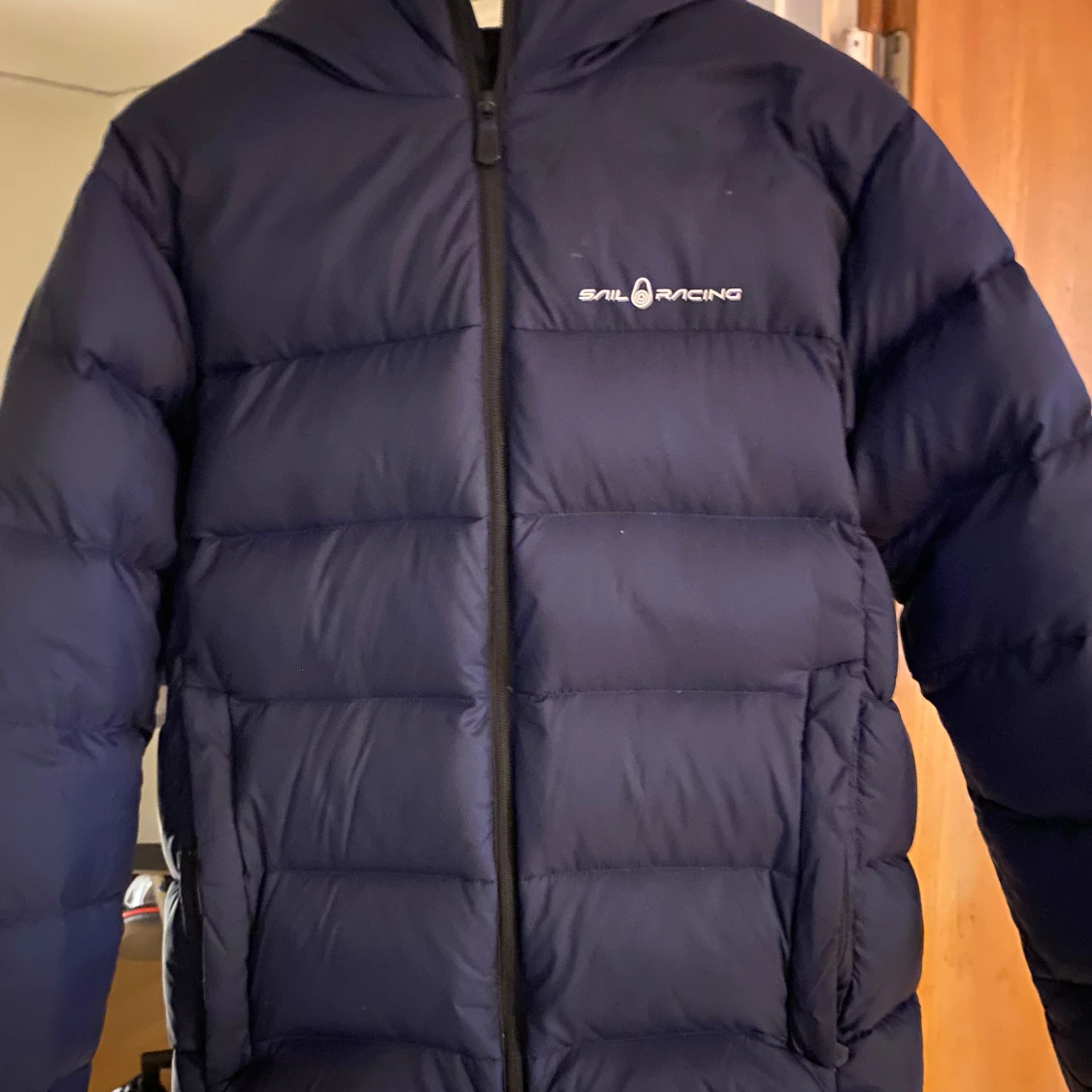 Snygg och varm mörkblå jacka från Sail Racing. Jackan har en dragkedja framtill och är perfekt för kyliga dagar. Den är långärmad och har en stilren design med logotyp på bröstet. Är i mycket fint skick, storlek 176 så passar typ S.