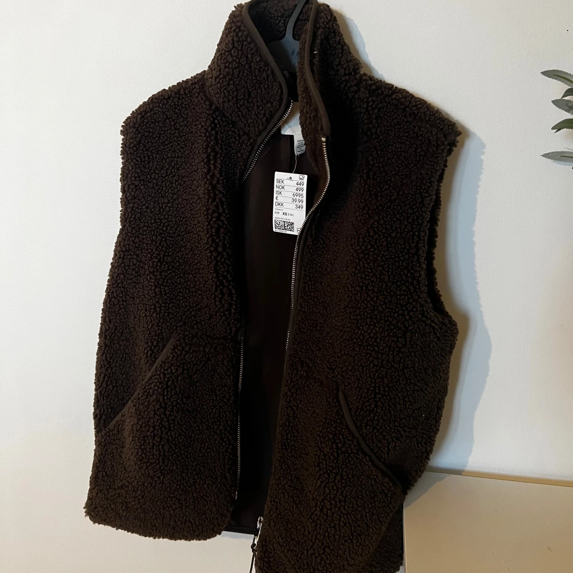 Mysig mörkbrun fleeceväst med hög krage och två fickor framtill. Varm och perfekt nu till hösten. Den är aldrig använd, prislapp är kvar så den är som helt ny. Är även i storlek XS men funkar om du har S samt M då den är rätt stor i storleken.