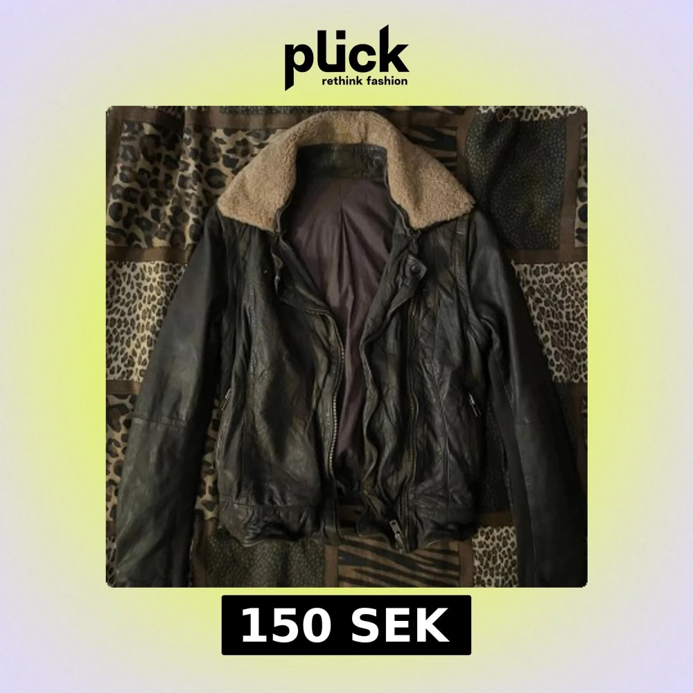 Vintage skinnjacka med pälskrage. Knappt använd!