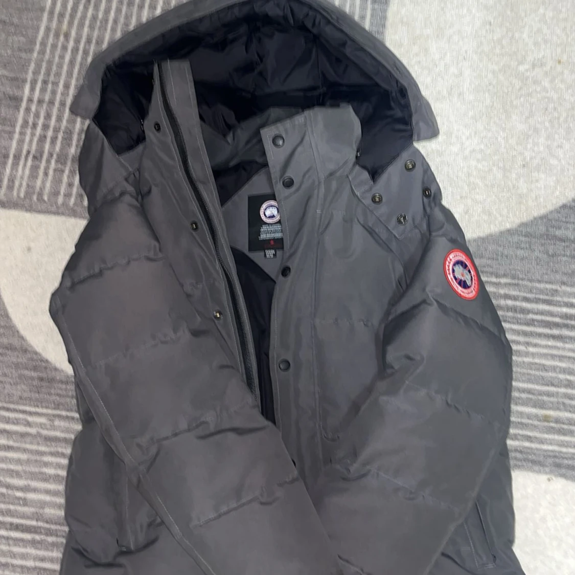 Säljer en mörkgrå dunjacka från Canada Goose. Ganska ny, med päls. Passar perfekt för en m storlek