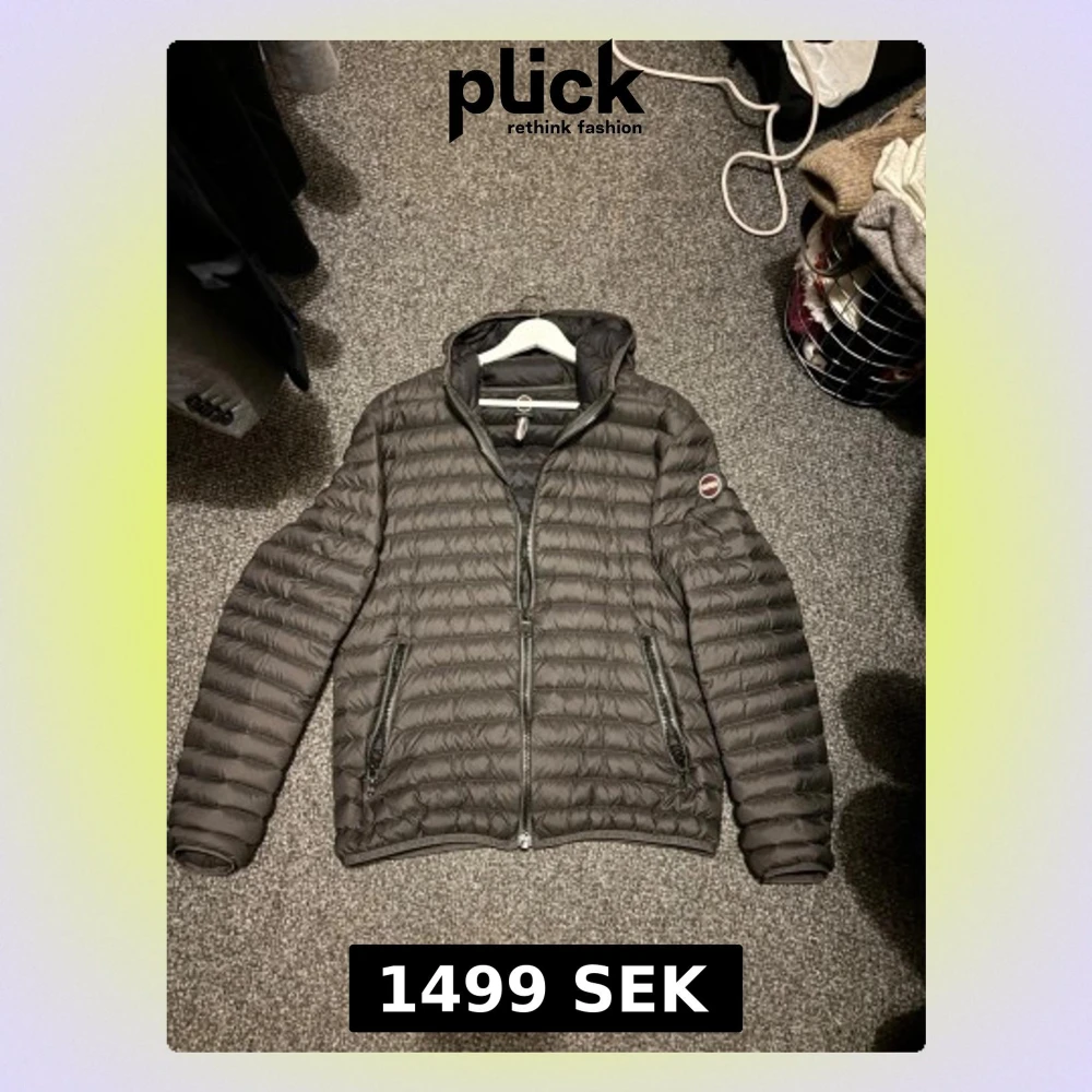 Säljer en mörkgrå pufferjacka från Colmar med huva och två sidofickor med dragkedja. Jackan har ett quiltat mönster och Colmar-logga på vänster ärm. Perfekt för dig som gillar stilren och sportig look. Passar dig som vill ha en jacka med normal passform och lång ärm.