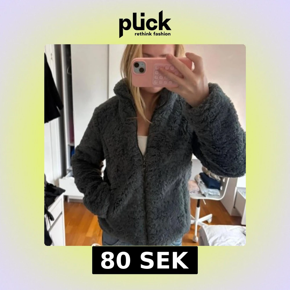 Mörkgrå teddyjacka!! Supergullig!💘💘💘 storlek S och i hyfsat fint skick. Fickorna har gått sönder vilket gör att man inte kan ha något i dem, men utåt på är jackan superfin!!
