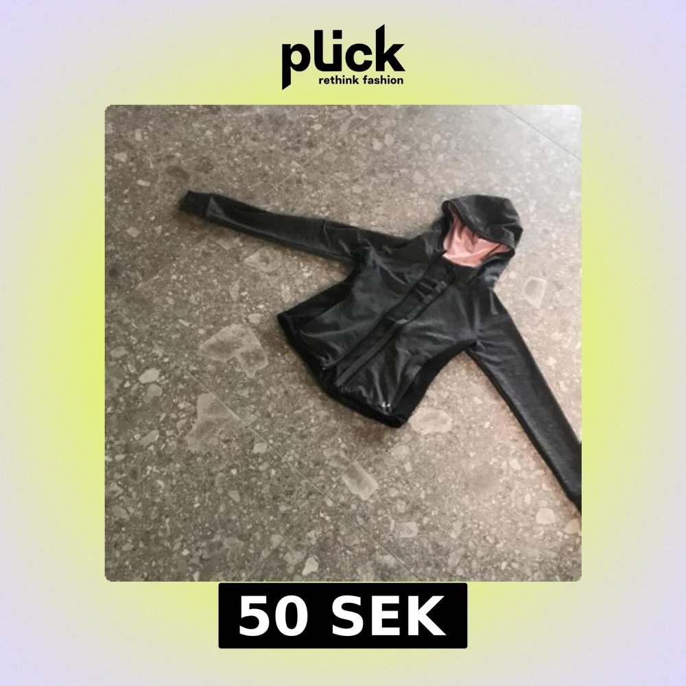 Säljer en mörkgrå träningsjacka med svart logga från Kari Traa. Jackan har huva med rosa foder, dragkedja framtill och långa ärmar. Perfekt för träning utomhus under svalare dagar.
