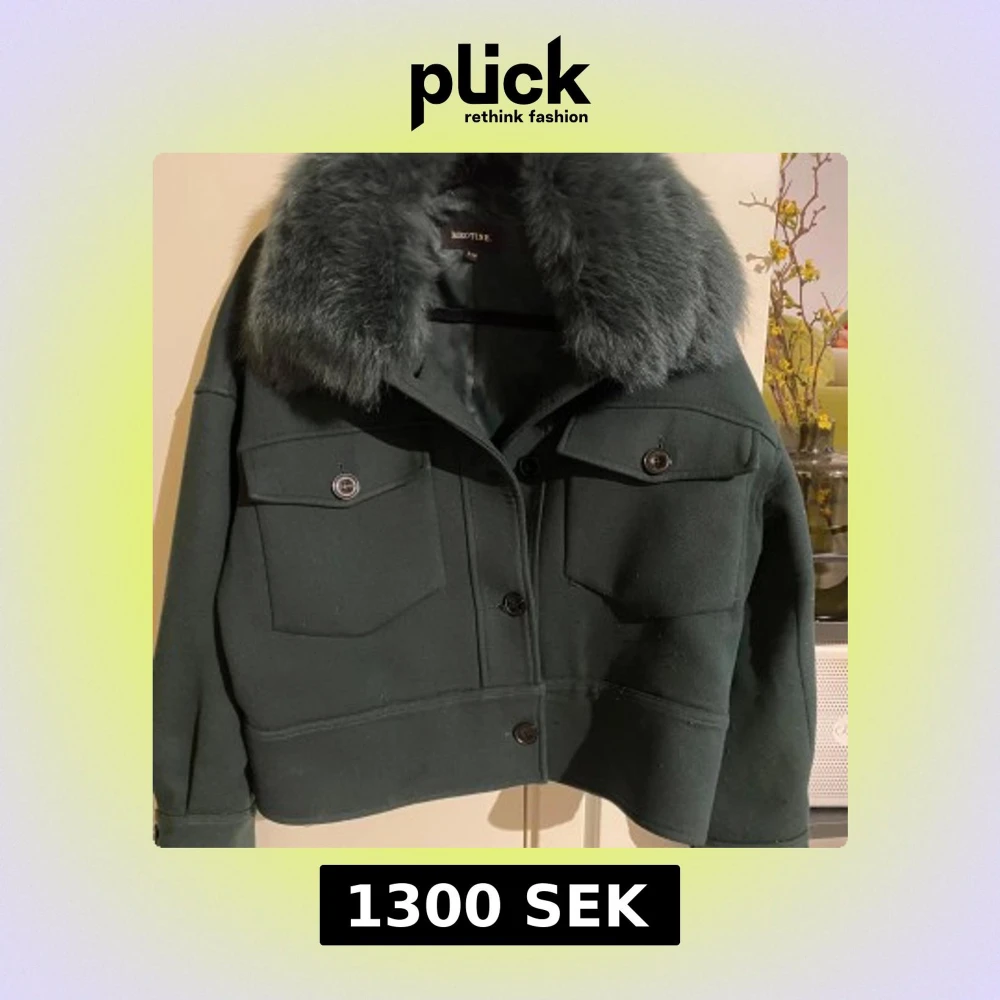 Mörkgrön jacka med päls