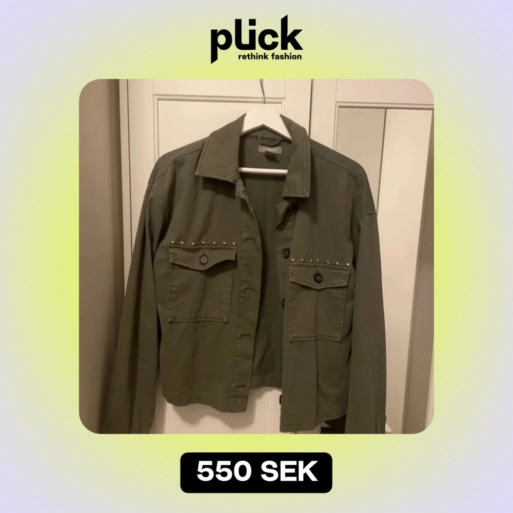 Säljer en olivgrön jacka från Lindex i storlek M. Den har coola nitar på fickorna och knappar framtill. Perfekt för höst och vår med sin avslappnade stil. Jackan är i bra skick och passar till både vardag och fest.