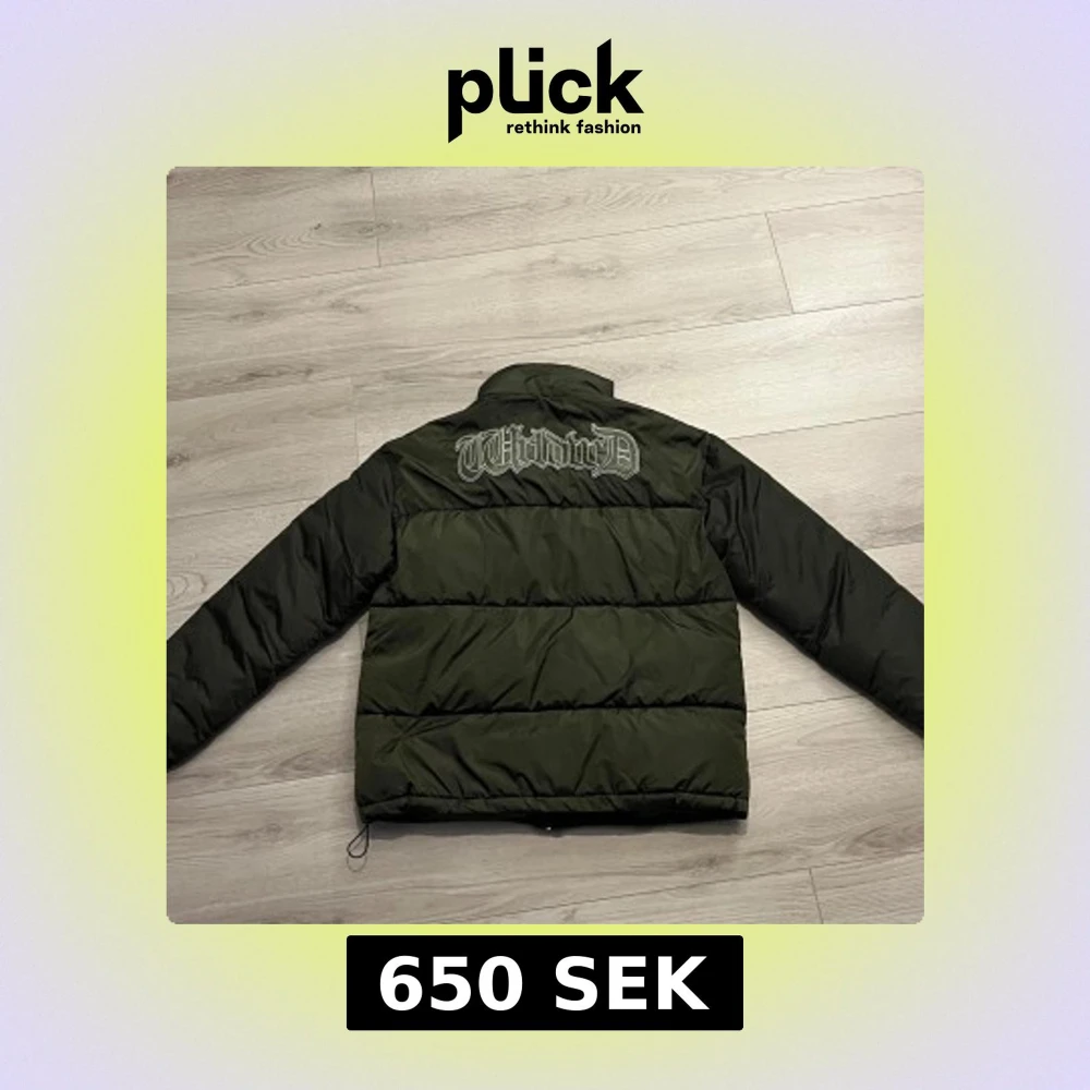 Säljer en mörkgrön pufferjacka från BoohooMAN med broderad text på ryggen. Jackan har dragkedja framtill, hög krage och två sidofickor. Perfekt för kyliga dagar och enkel att matcha med olika outfits. Jackan är använd BARA vid 1 tillfälle, alltså helt ny