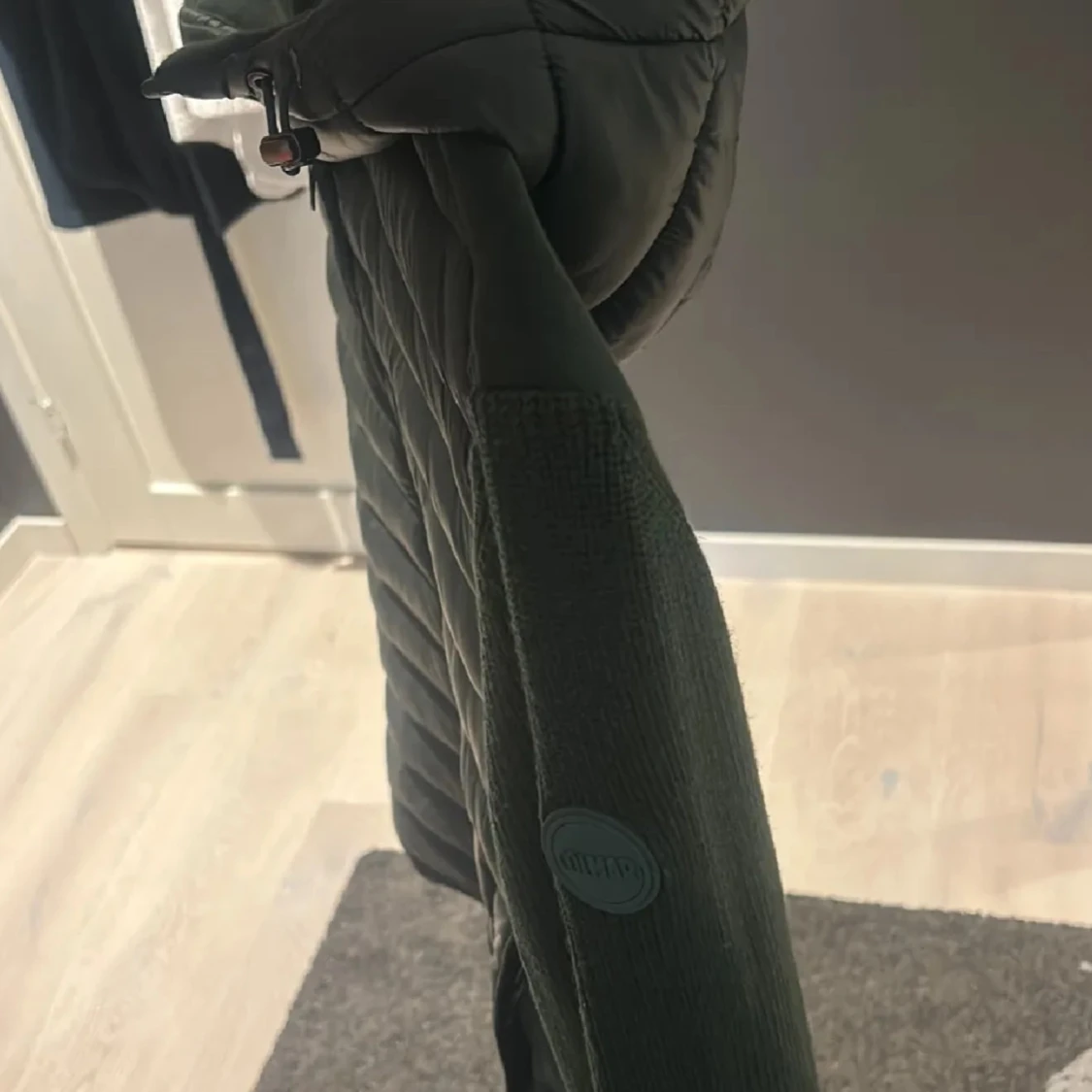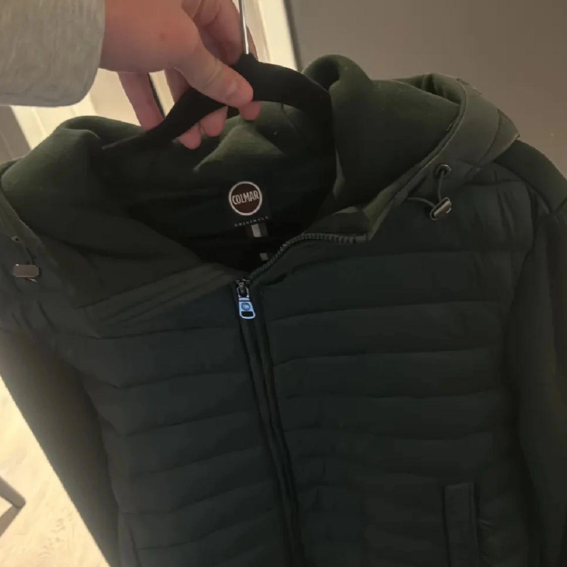 Köpte tyckte inte om färgen använd två gånger.Snygg mörkgrön pufferjacka från Colmar med huva och dragkedja framtill. Jackan har quiltad framsida och stickade ärmar med Colmar-logga på armen. Perfekt för dig som vill ha en cool och bekväm jacka med streetkänsla.