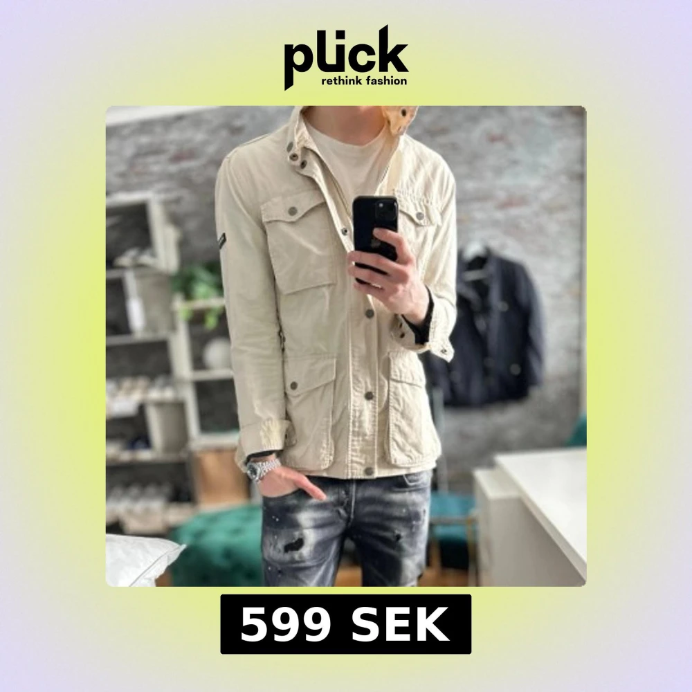 Bra skick, lite gulaktig/fläckig men syns inte tydligt! Storlek S sitter som S och passar dig som är mellan 175-185cm ungefär. Nypris ca 2500kr. Modellen är 185 cm, 75kg. Passar bra nu till våren! Skriv för mer information!🤝