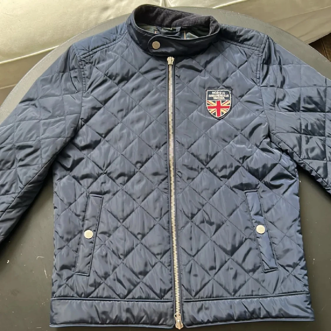 Snygg blå quiltad jacka. Perfekt till våren och för en stilren look. Skicket 10/10, använd max 5 gånger