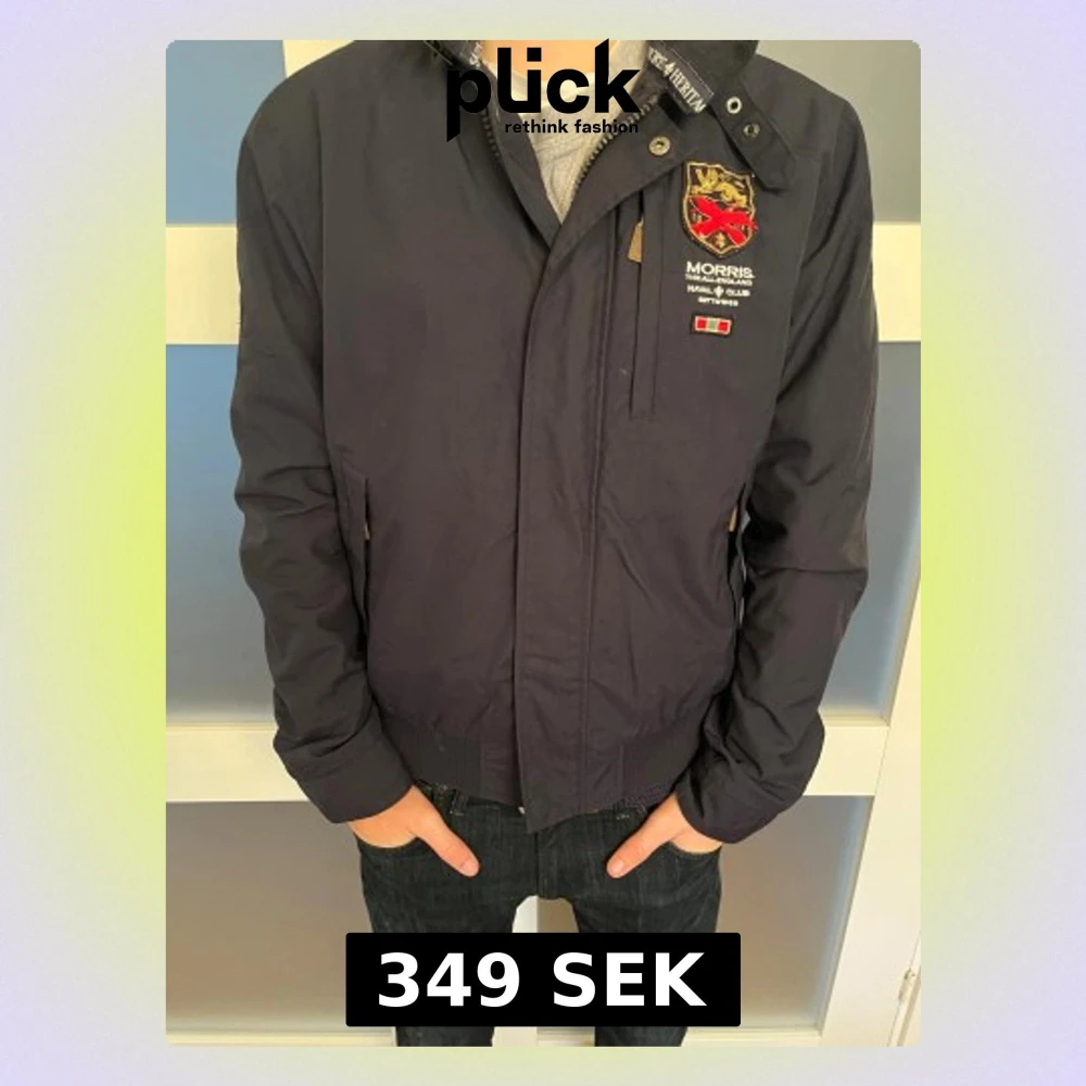 Snygg marinblå vindjacka från Morris med broderad logga och emblem på bröstet. Jackan har ståkrage med tryckknapp, dragkedja och ribbade muddar. Fodret har röd och vit detalj. Perfekt för dig som gillar klassisk stil med coola detaljer.