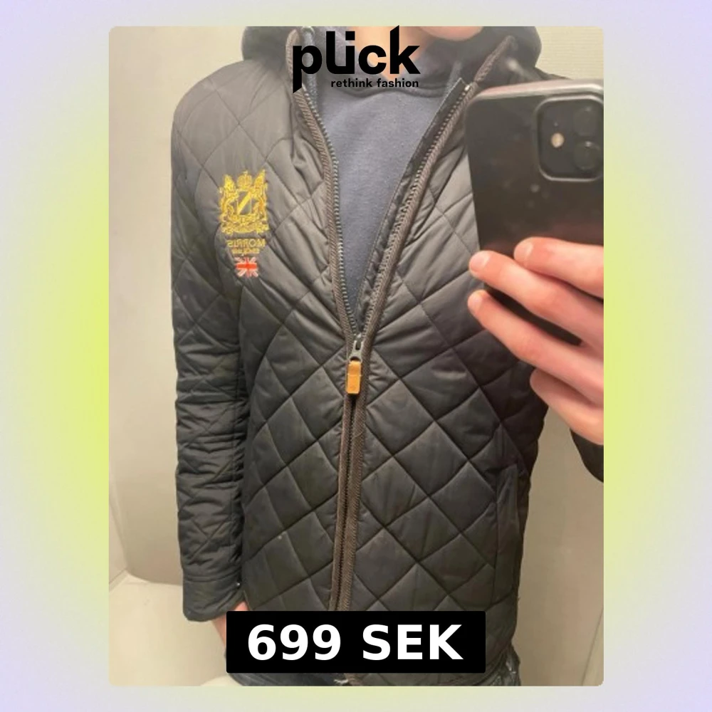 Snygg svart quiltad jacka från Morris med gul broderad logga och brittisk flagga på bröstet. Jackan har dragkedja framtill, sidofickor och en klassisk, smal passform. Perfekt för dig som gillar stilrena detaljer och tidlös design.