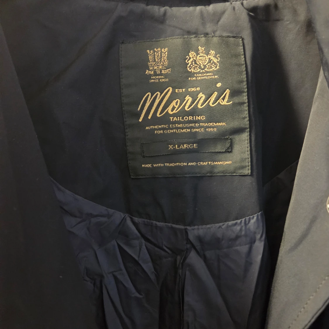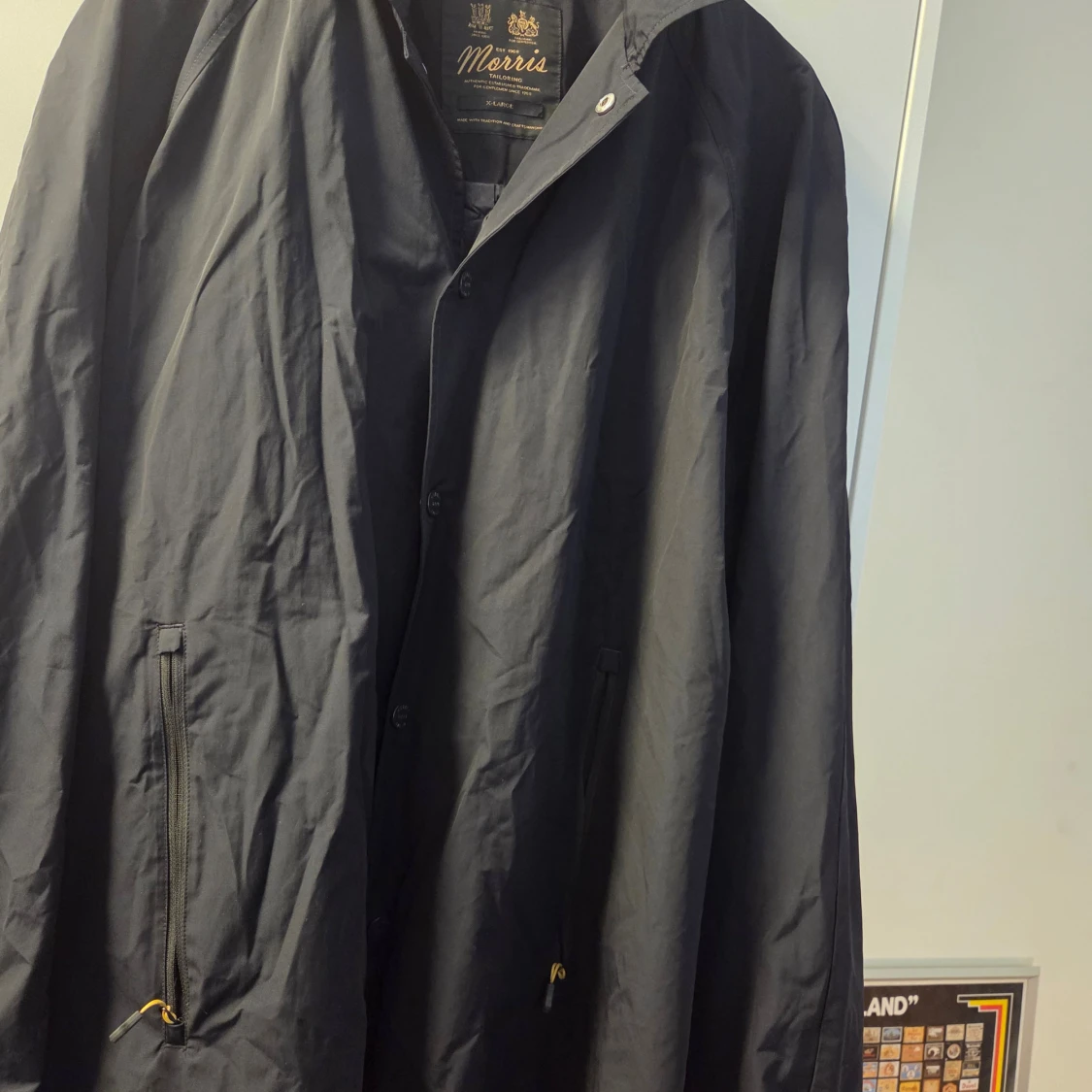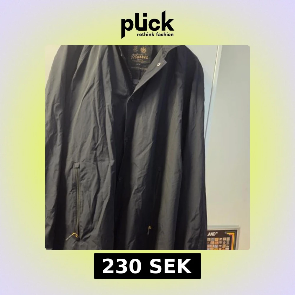 Säljer en svart vindjacka från Morris i storlek XL. Jackan har dragkedja och knappar framtill samt diskreta fickor med dragkedja. Klassisk och stilren design med lätt material, perfekt för blåsiga dagar.