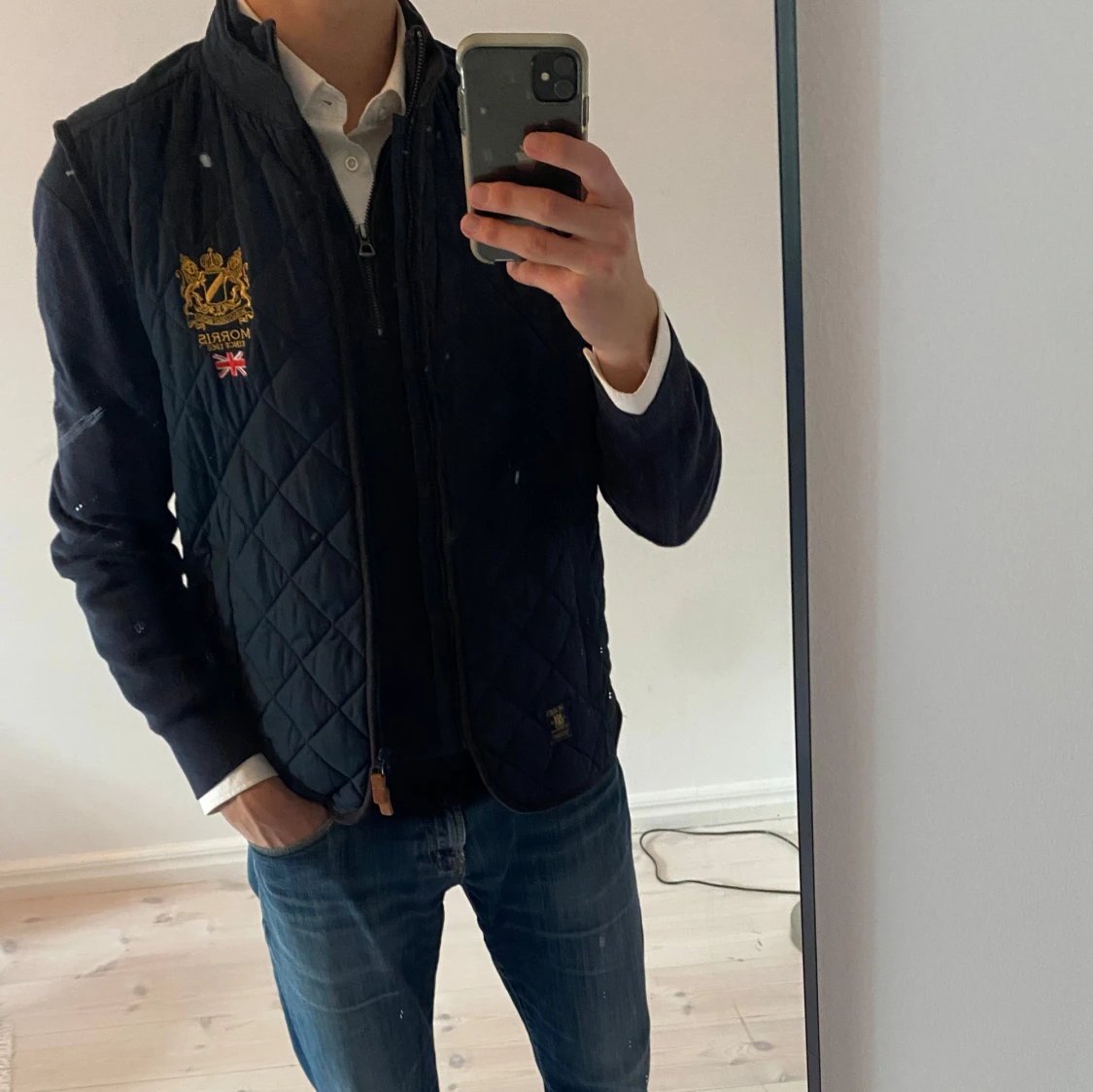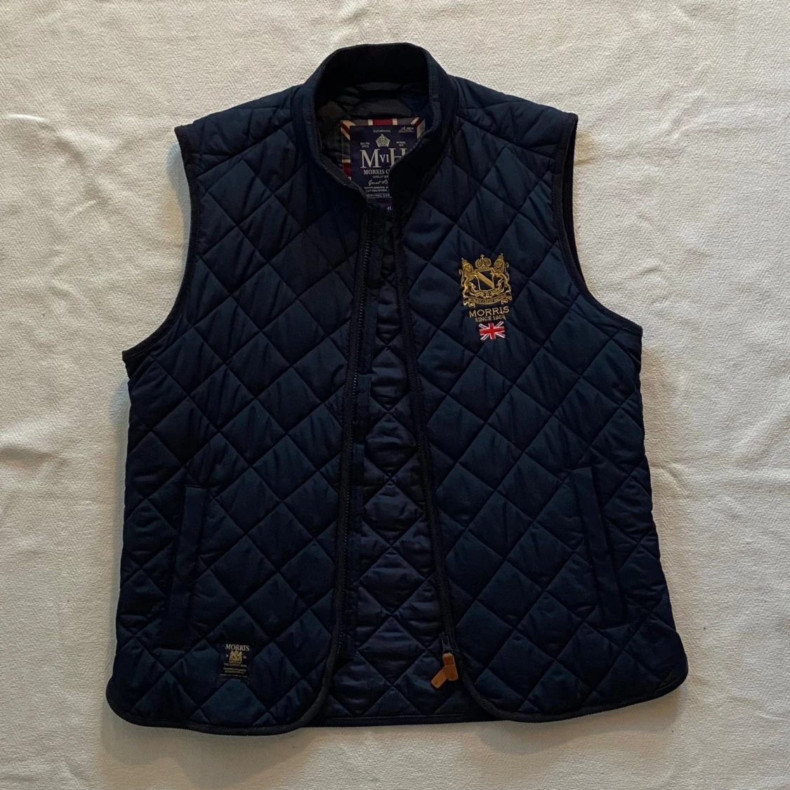 En riktigt snygg och klassisk quiltad väst från Morris. Med en tidlös design och otroligt snygga detaljer är den given i garderoben. Den har en riktigt bra passform i storlek M och fungerar perfekt till finare tillfällen men även till vardagen. Västen är i mycket bra skick! Vid intresse är det bara att höra av sig ;)